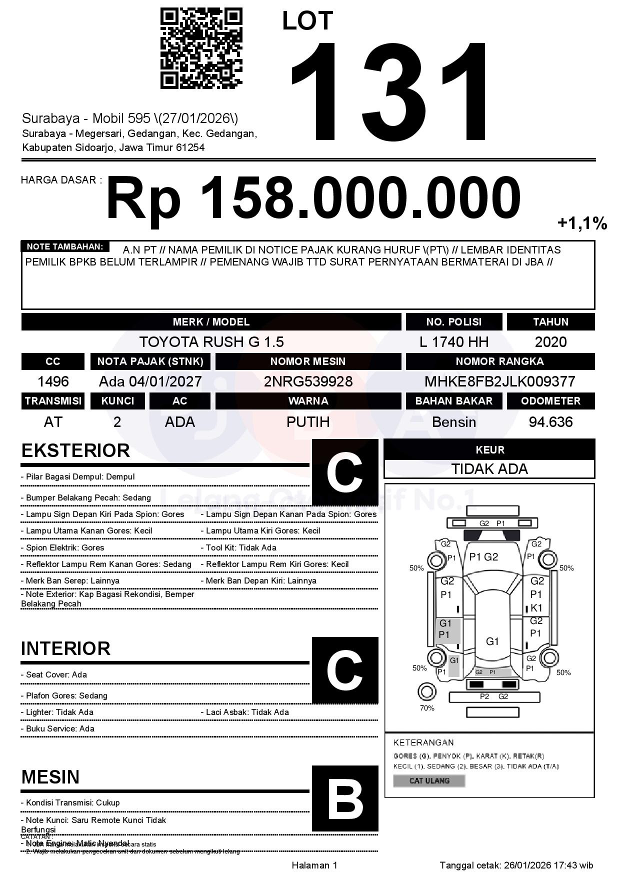 Tanggal Lelang: 27/01/2026 | 13:00 WIB