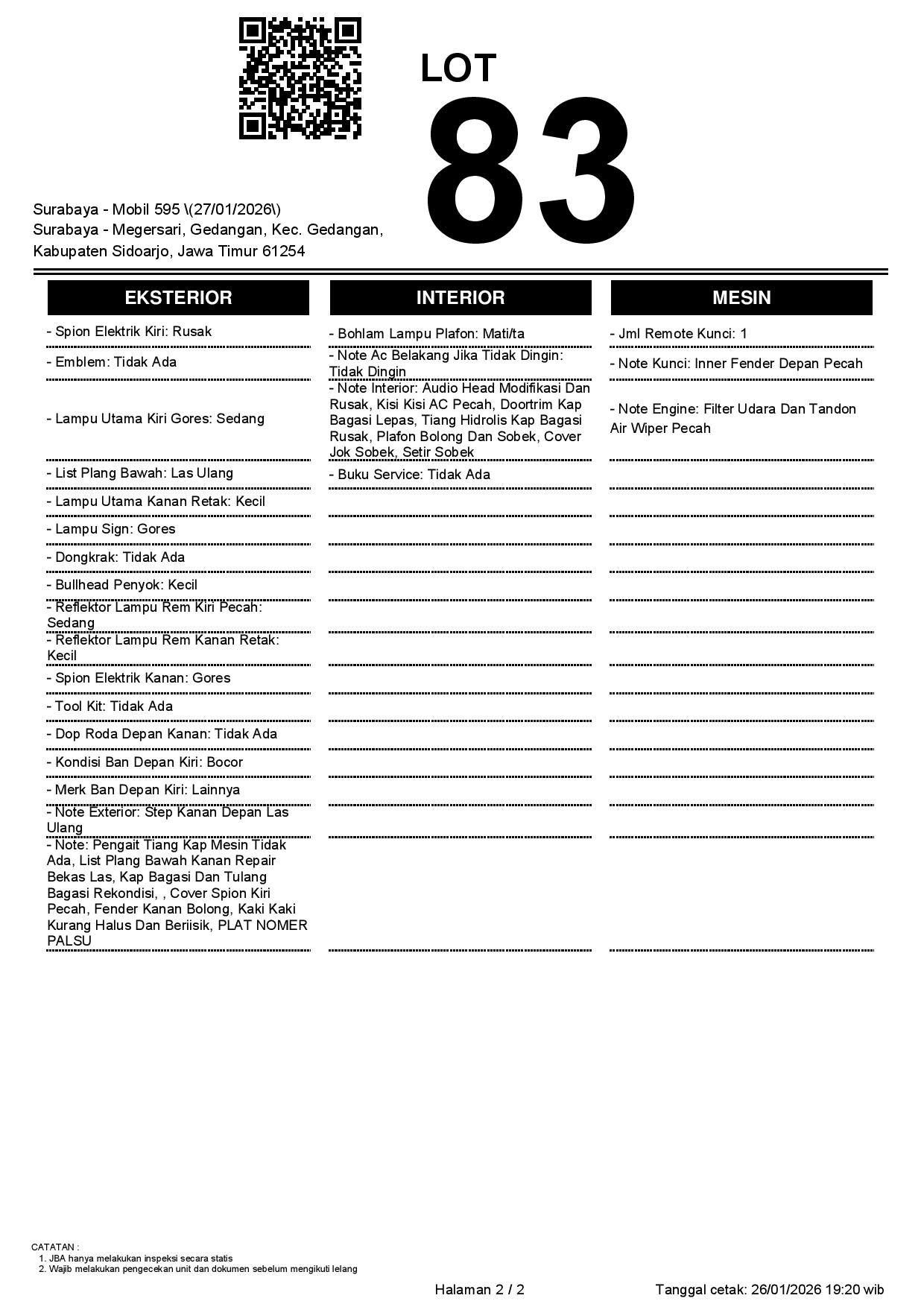 Tanggal Lelang: 27/01/2026 | 13:00 WIB