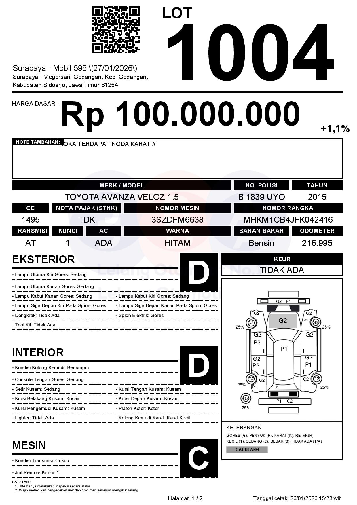 Tanggal Lelang: 27/01/2026 | 14:00 WIB