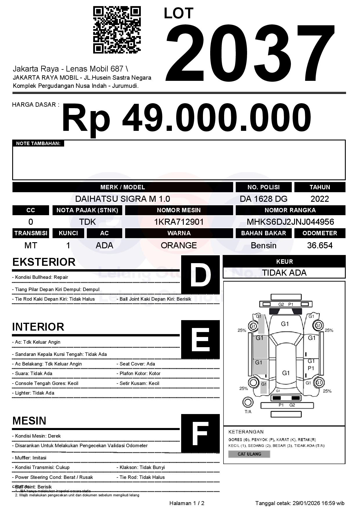 Tanggal Lelang: 30/01/2026 | 14:00 WIB
