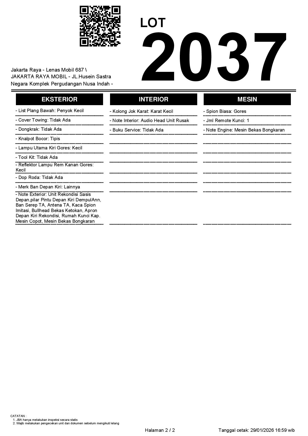 1. Peserta lelang wajib cek unit & dokumen