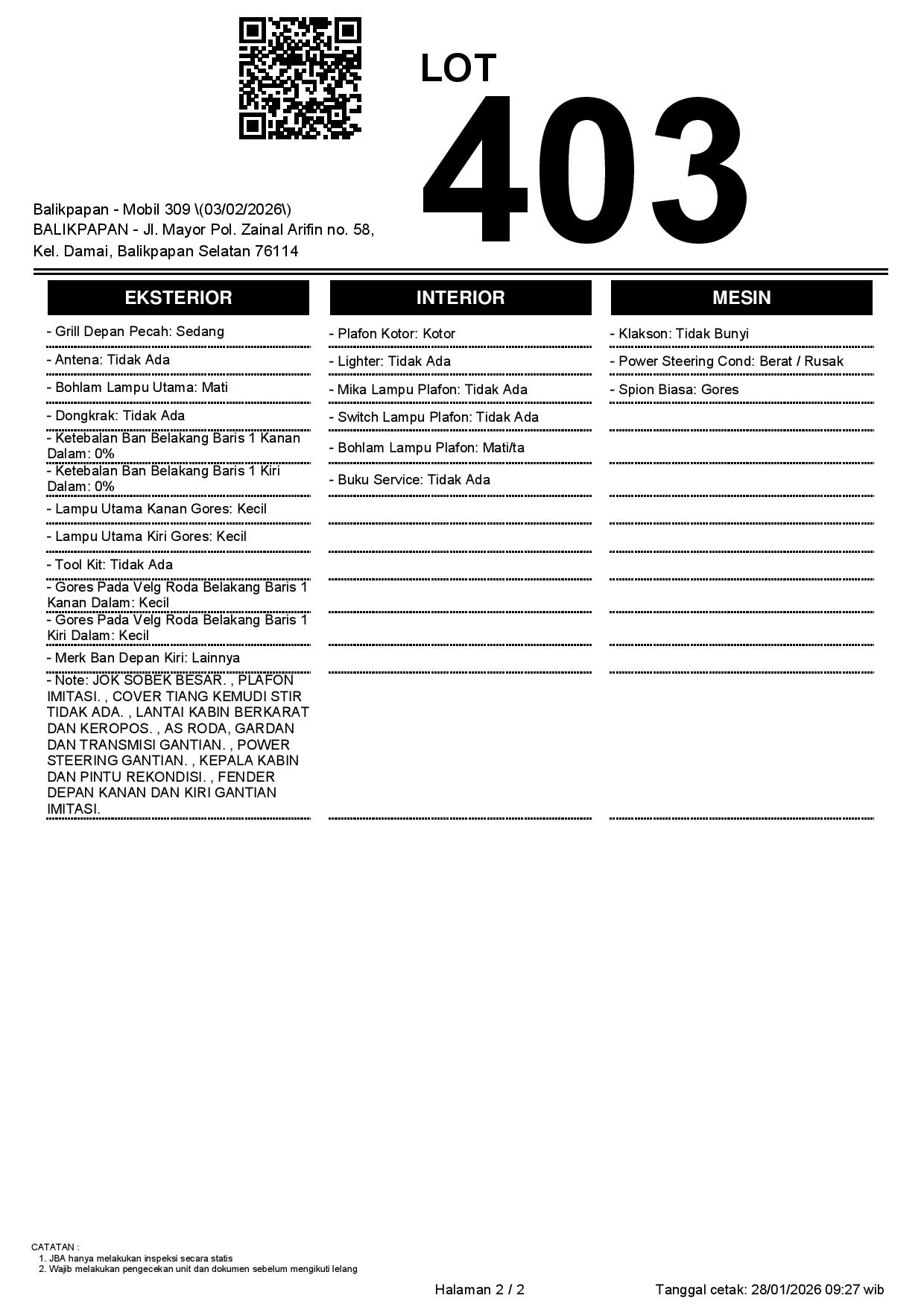 Tanggal Lelang: 03/02/2026 | 13:00 WITA