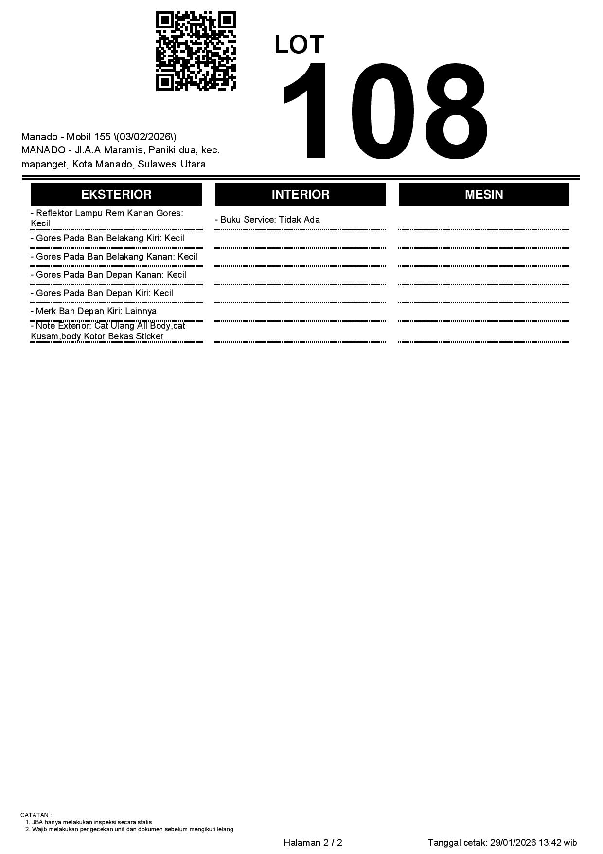 1. Peserta lelang wajib cek unit & dokumen