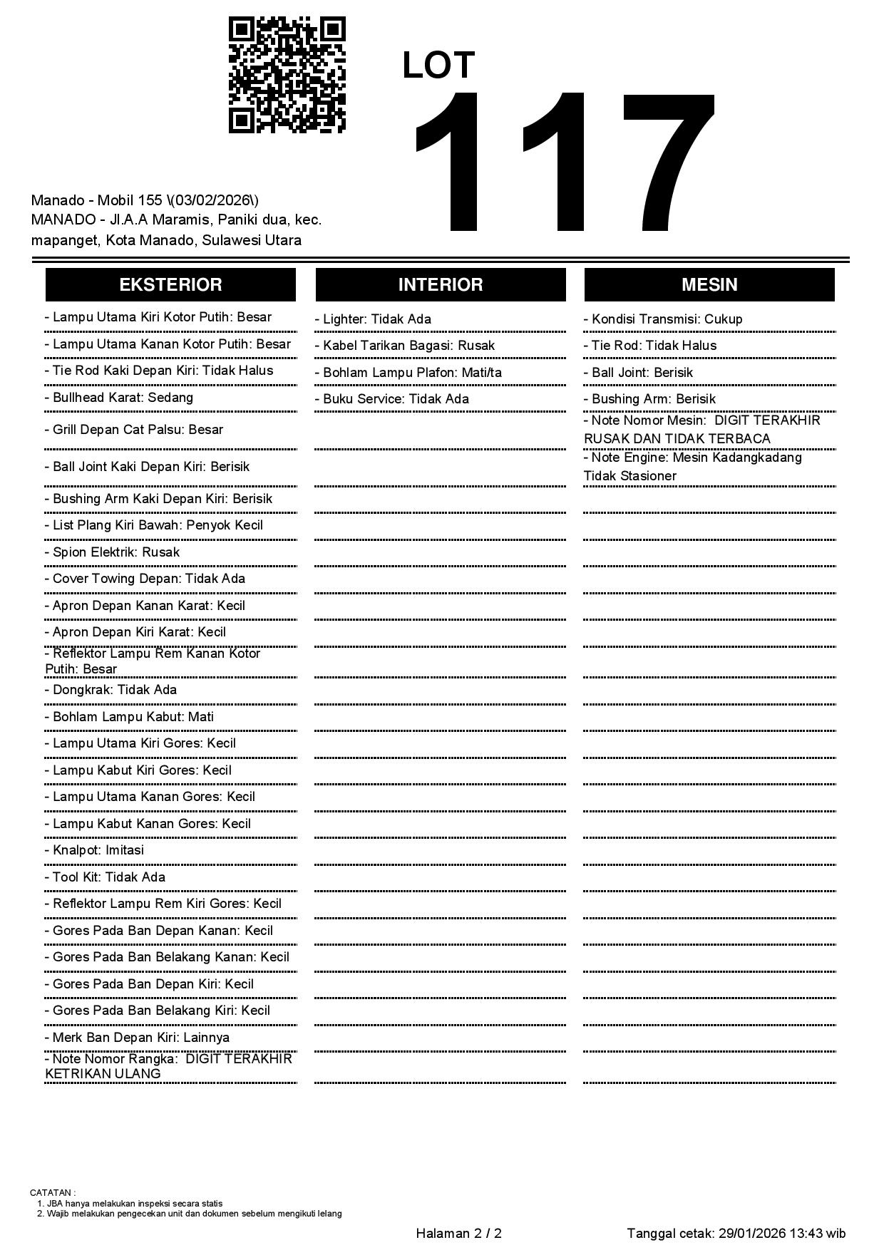 2. Peserta lelang wajib cek unit & dokumen
