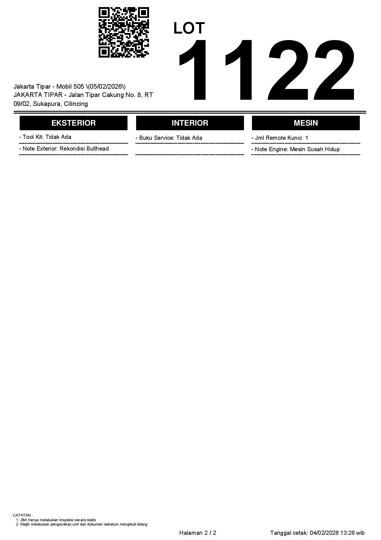 Tanggal Lelang: 05/02/2026 | 14:00 WIB