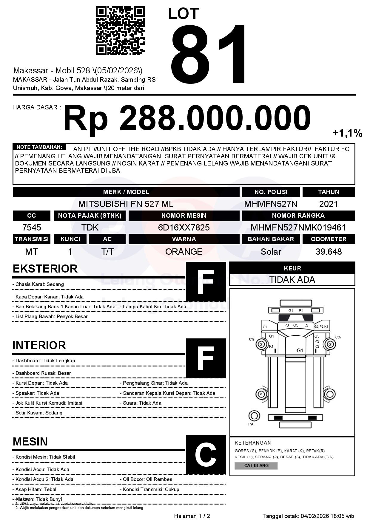 AN PT //UNIT OFF THE ROAD //BPKB TIDAK ADA // HANYA TERLAMPIR FAKTUR// FAKTUR FC // PEMENANG LELANG WAJIB MENANDATANGANI SURAT PERNYATAAN BERMATERAI // WAJIB CEK UNIT & DOKUMEN SECARA LANGSUNG // NOSIN KARAT // PEMENANG LELANG WAJIB MENANDATANGANI SURAT PERNYATAAN BERMATERAI DI JBA