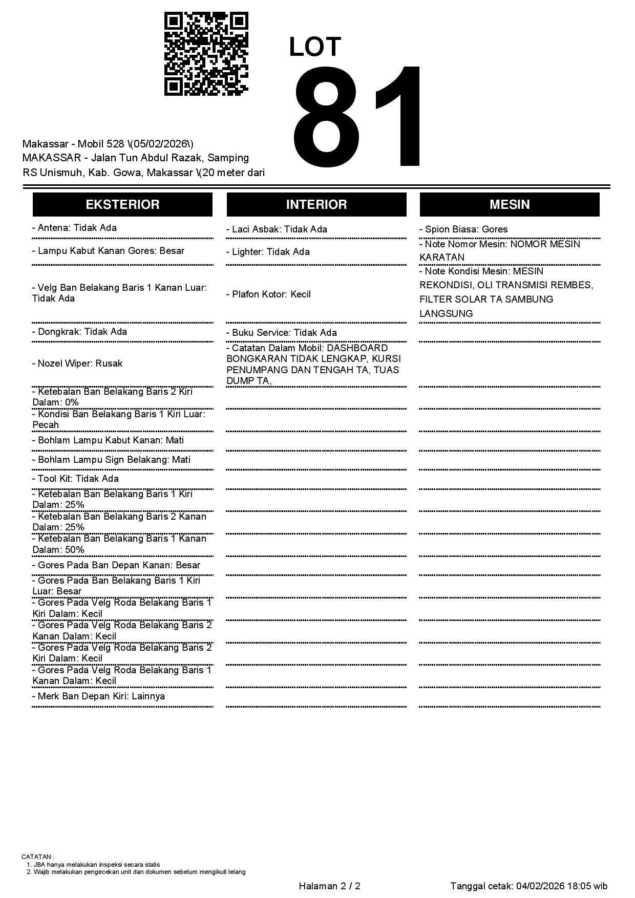 2. Peserta lelang wajib cek unit & dokumen