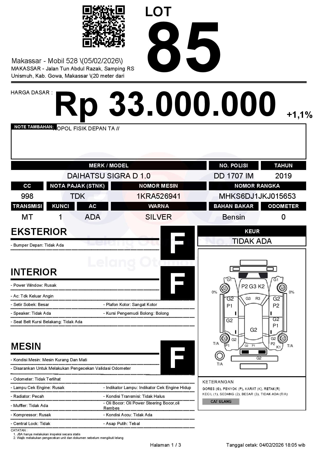 Tanggal Lelang: 05/02/2026 | 13:00 WITA