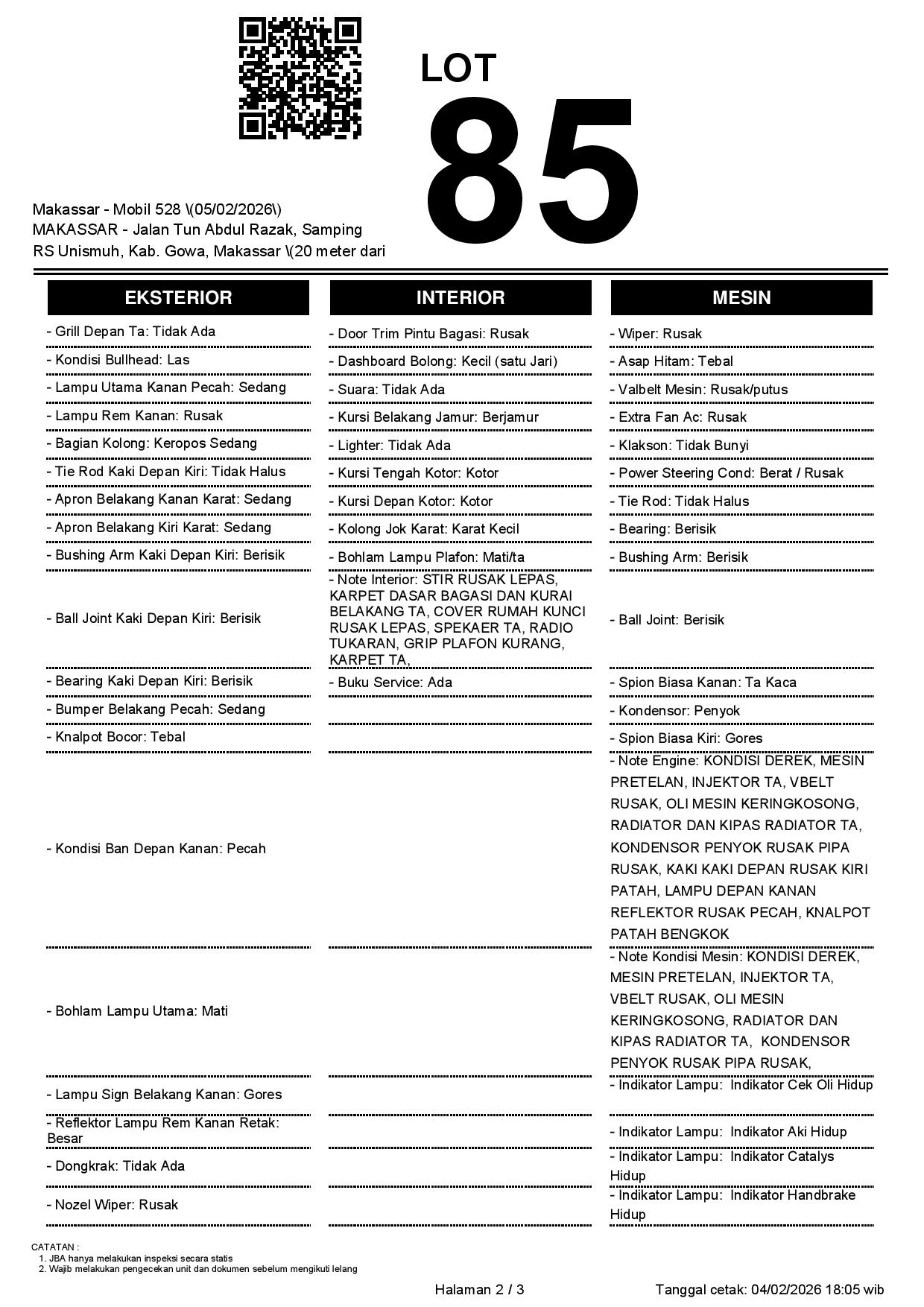 2. Peserta lelang wajib cek unit & dokumen