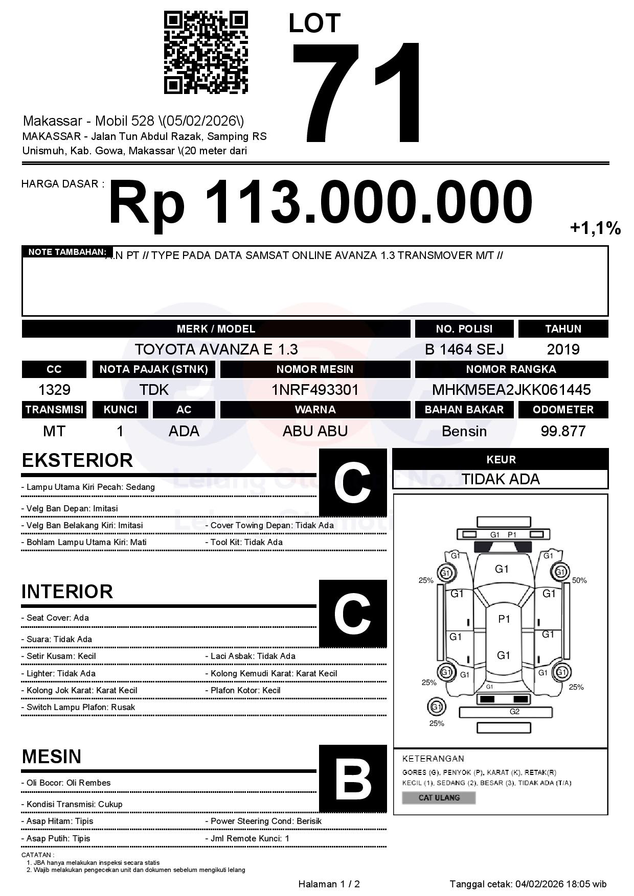 Tanggal Lelang: 05/02/2026 | 13:00 WITA
