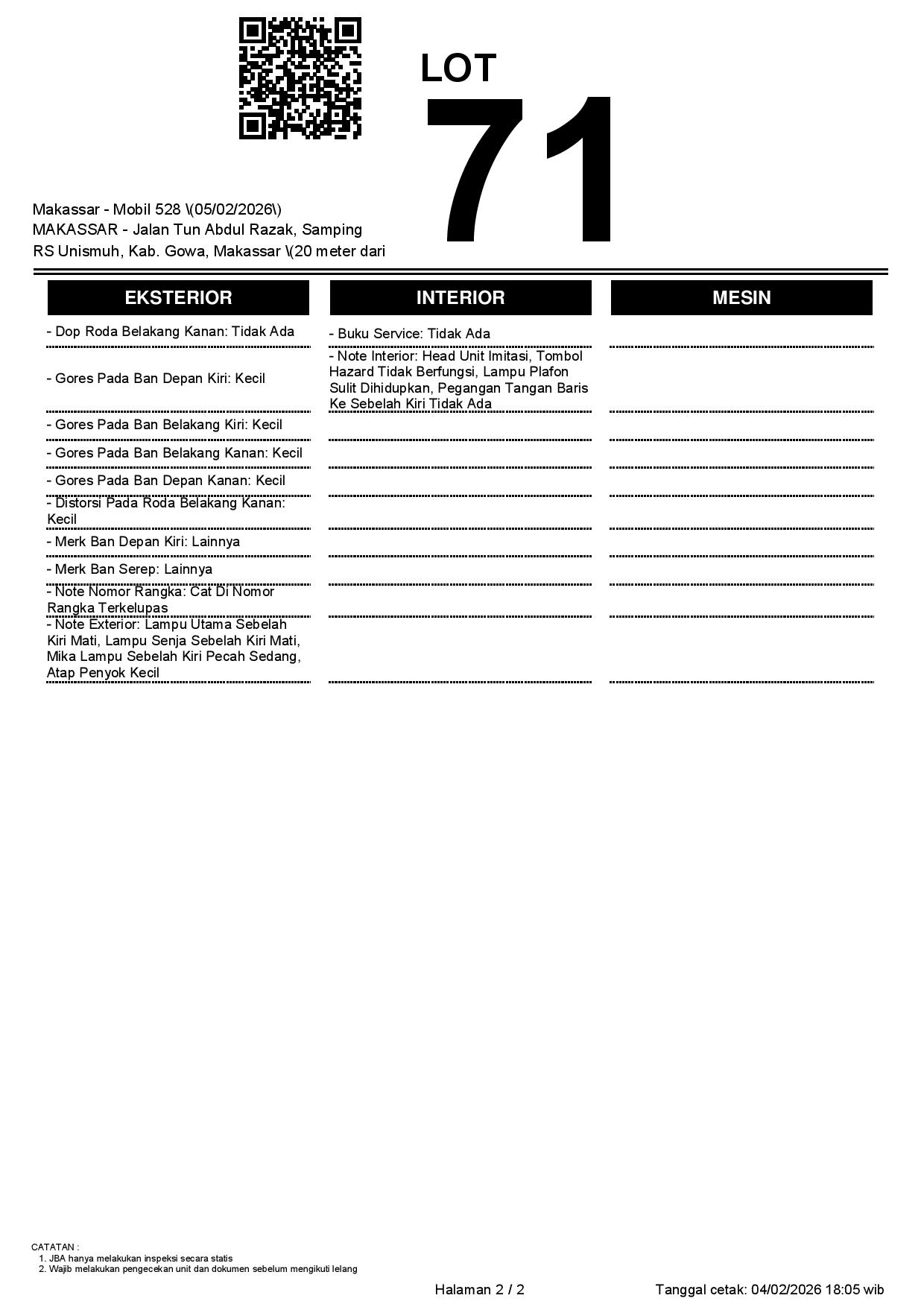 2. Peserta lelang wajib cek unit & dokumen