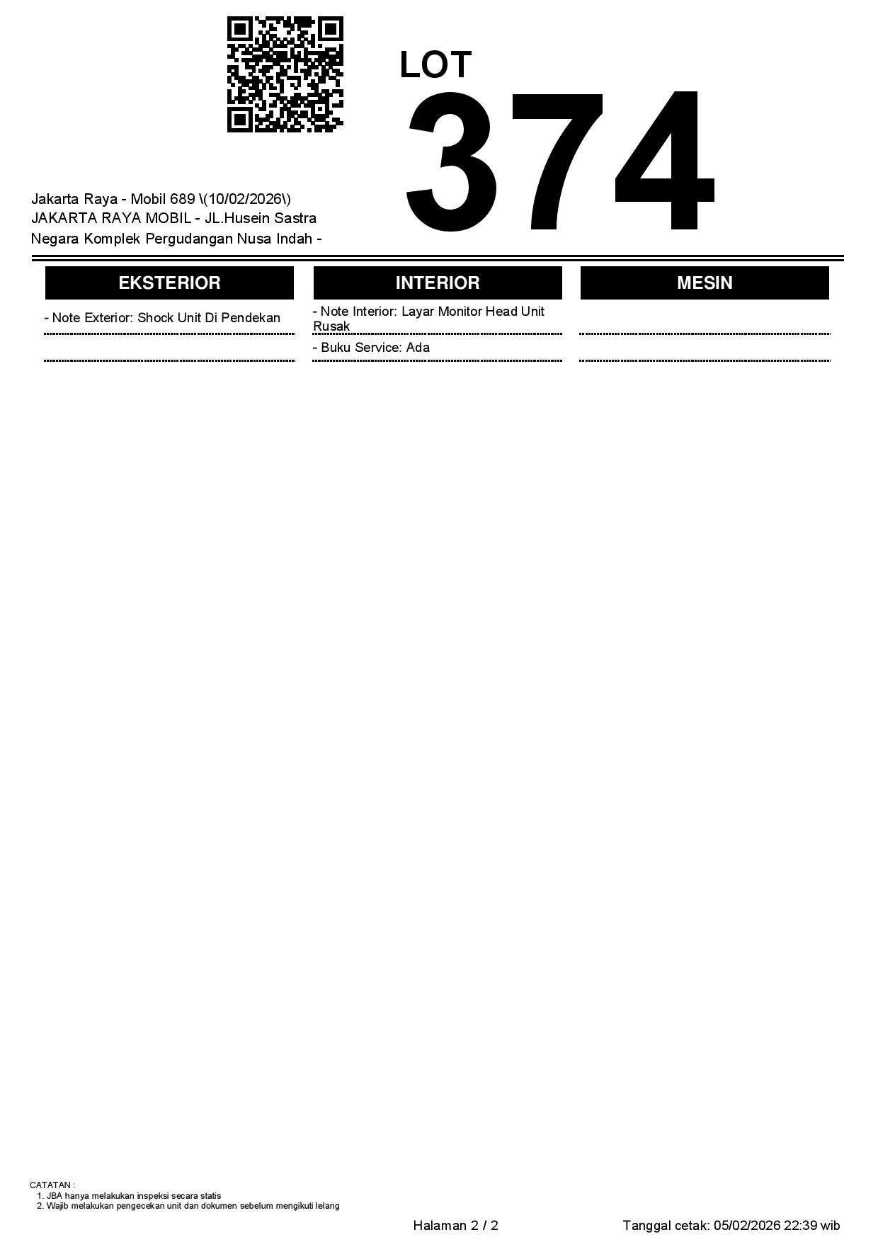 2. Peserta lelang wajib cek unit & dokumen