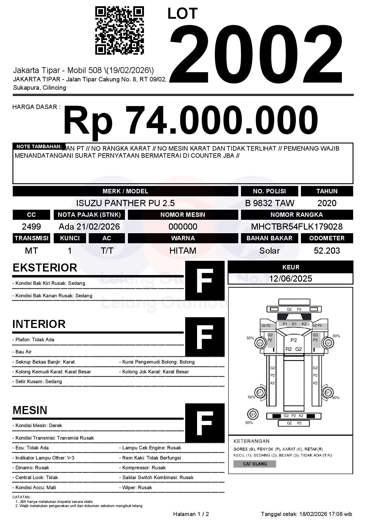 Tanggal Lelang: 19/02/2026 | 14:00 WIB