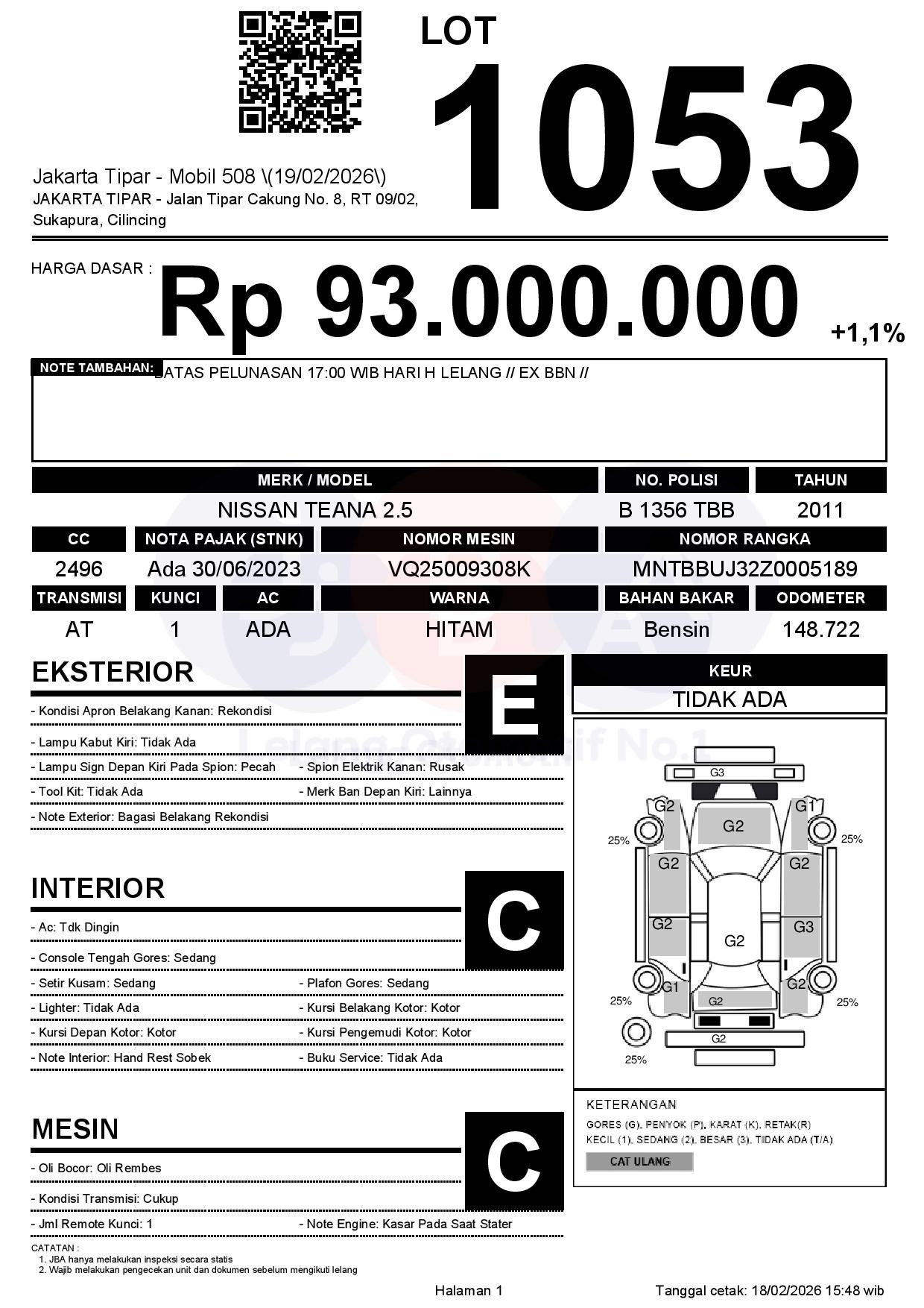 Tanggal Lelang: 19/02/2026 | 14:00 WIB