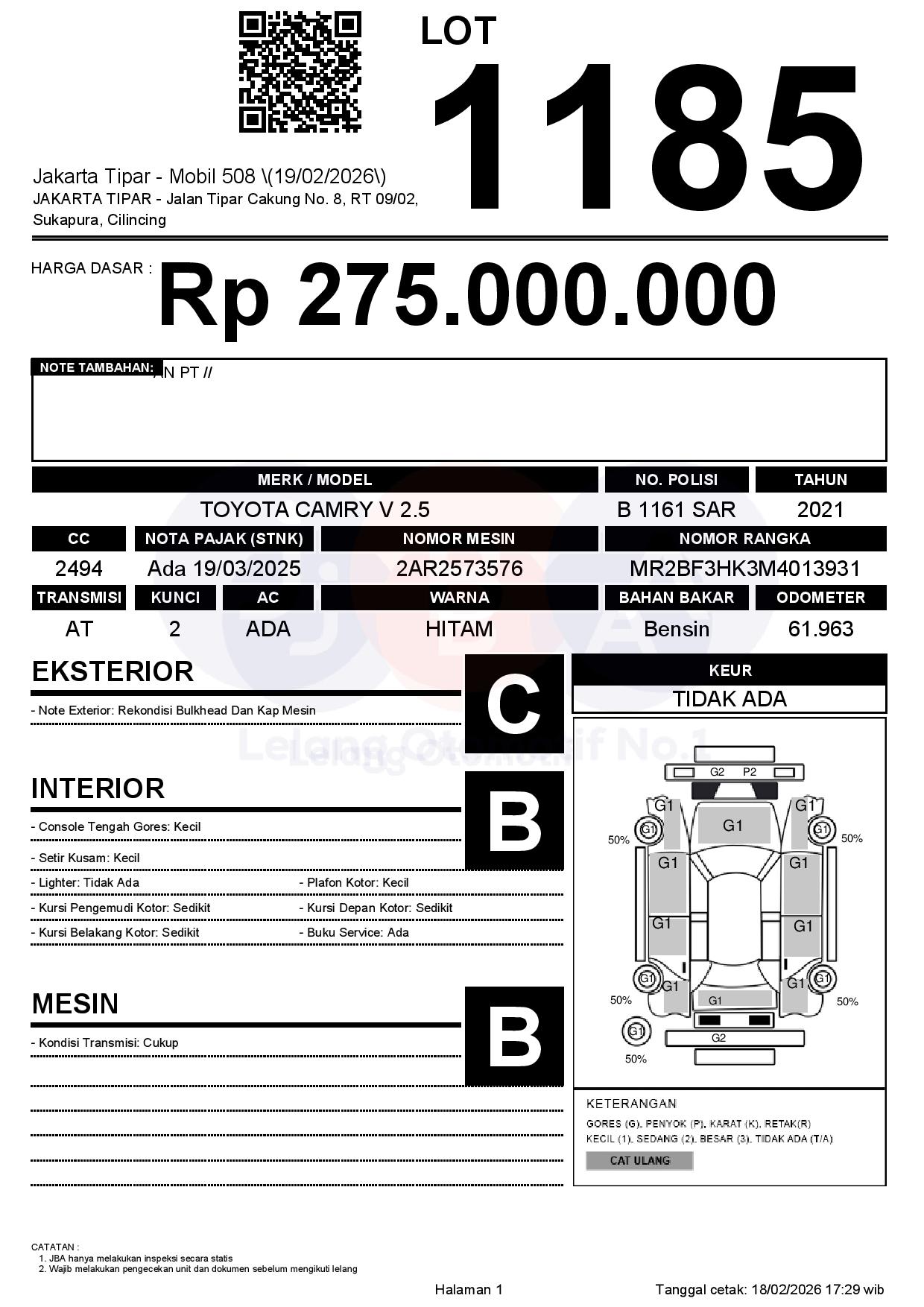 Tanggal Lelang: 19/02/2026 | 14:00 WIB