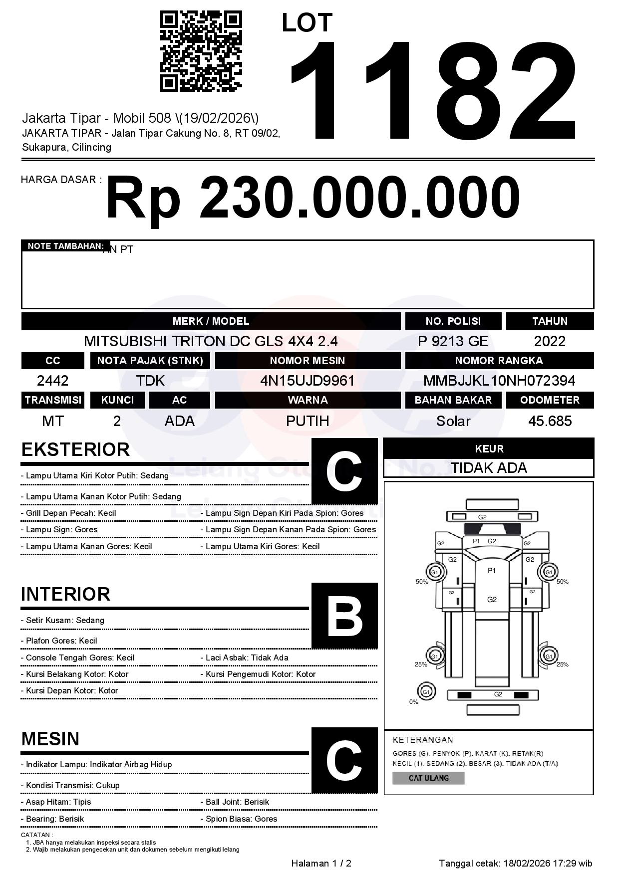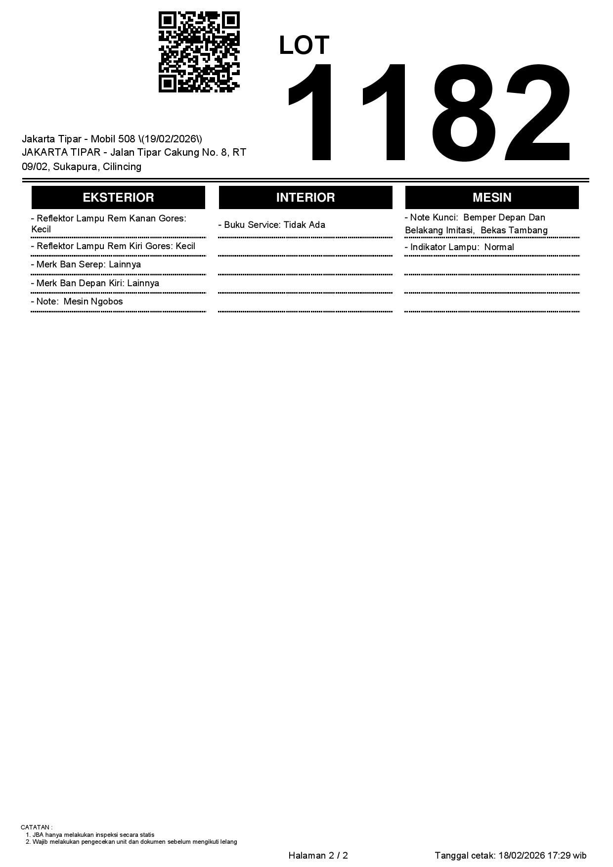Tanggal Lelang: 19/02/2026 | 14:00 WIB