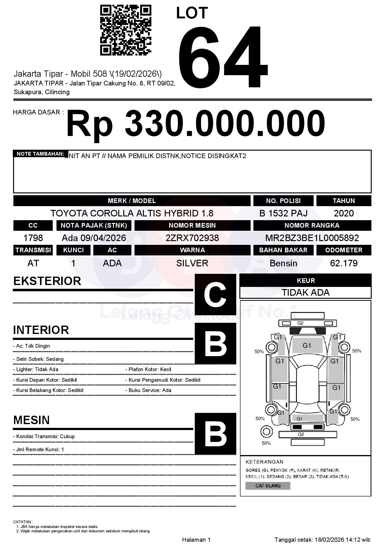 Tanggal Lelang: 19/02/2026 | 13:00 WIB
