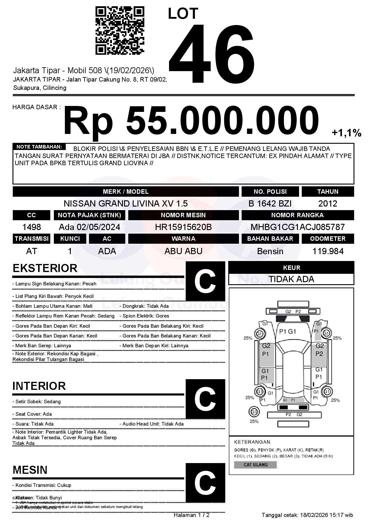 BLOKIR POLISI & PENYELESAIAN BBN & E.T.L.E // PEMENANG LELANG WAJIB TANDA TANGAN SURAT PERNYATAAN BERMATERAI DI JBA // DISTNK,NOTICE TERCANTUM: EX PINDAH ALAMAT // TYPE UNIT PADA BPKB TERTULIS GRAND LIOVINA //