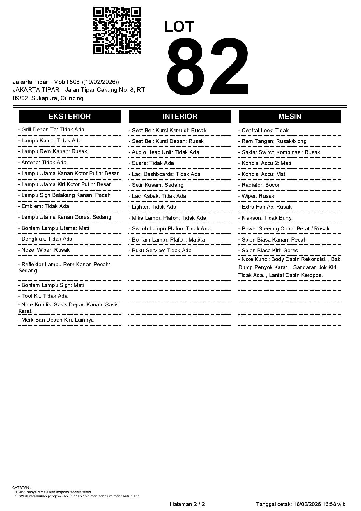 2. Peserta lelang wajib cek unit & dokumen