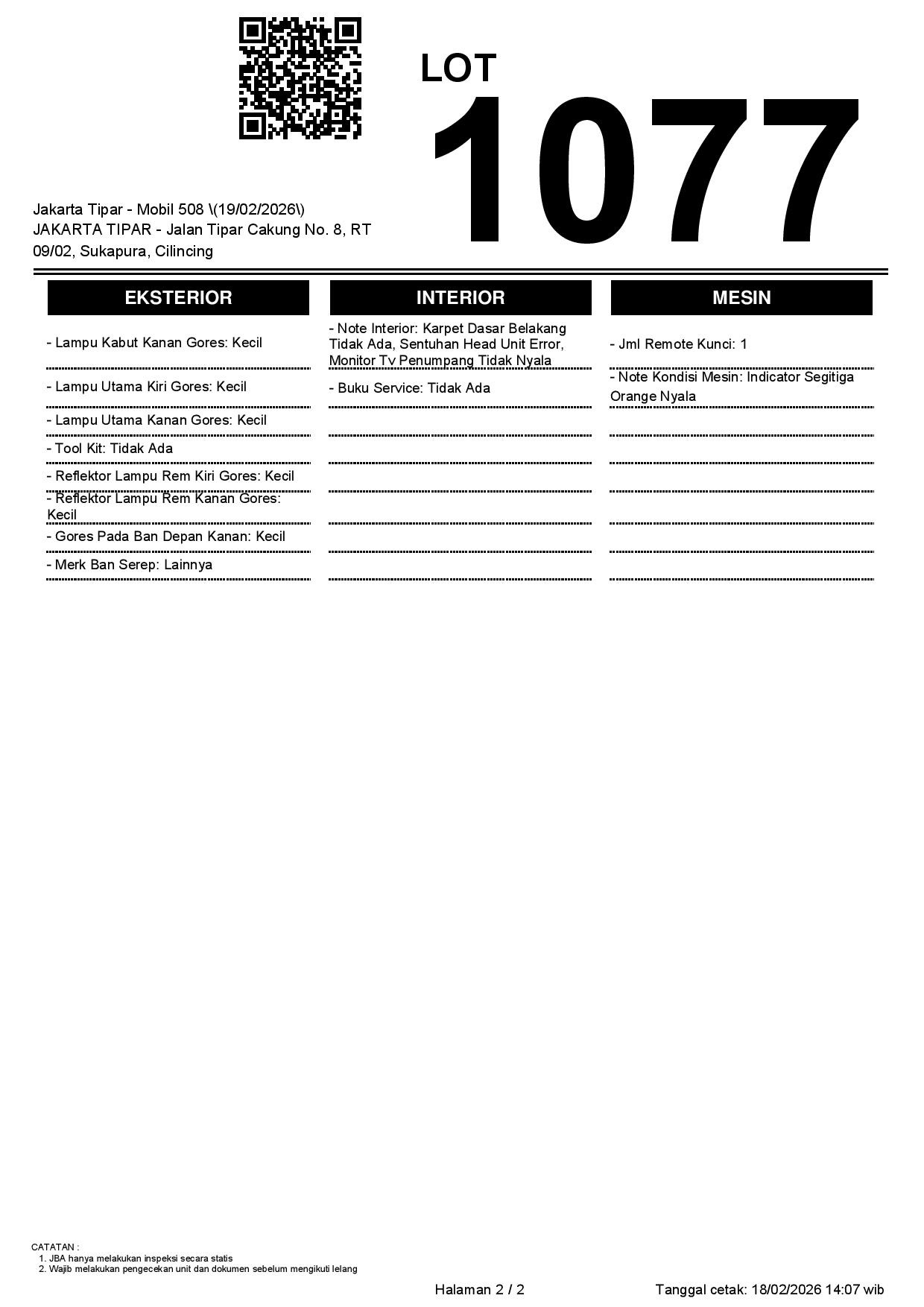 2. Peserta lelang wajib cek unit & dokumen