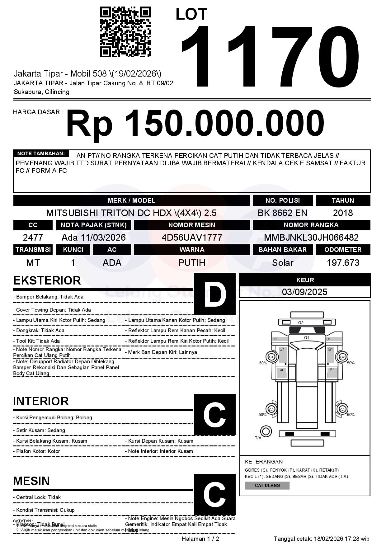 Tanggal Lelang: 19/02/2026 | 14:00 WIB