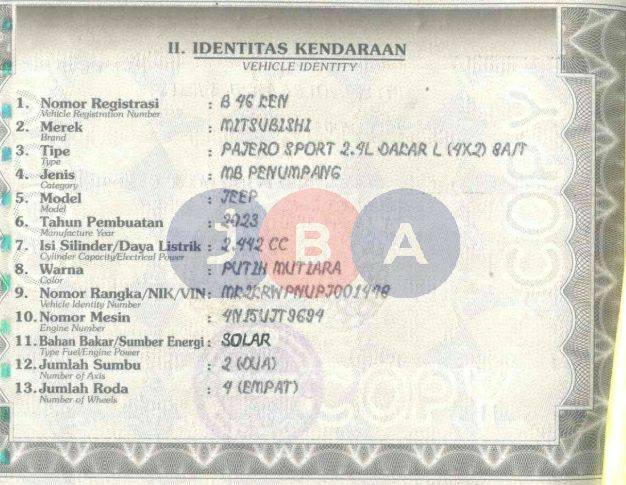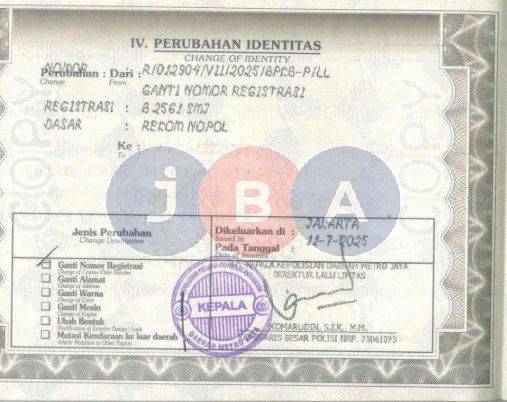A/N PT // NOPOL LAMA B 46 KEN // KWT MATERAI TERAAN // TERDAPAT PENEBALAN PADA PENULISAN BAHAN BAKAR BPKB