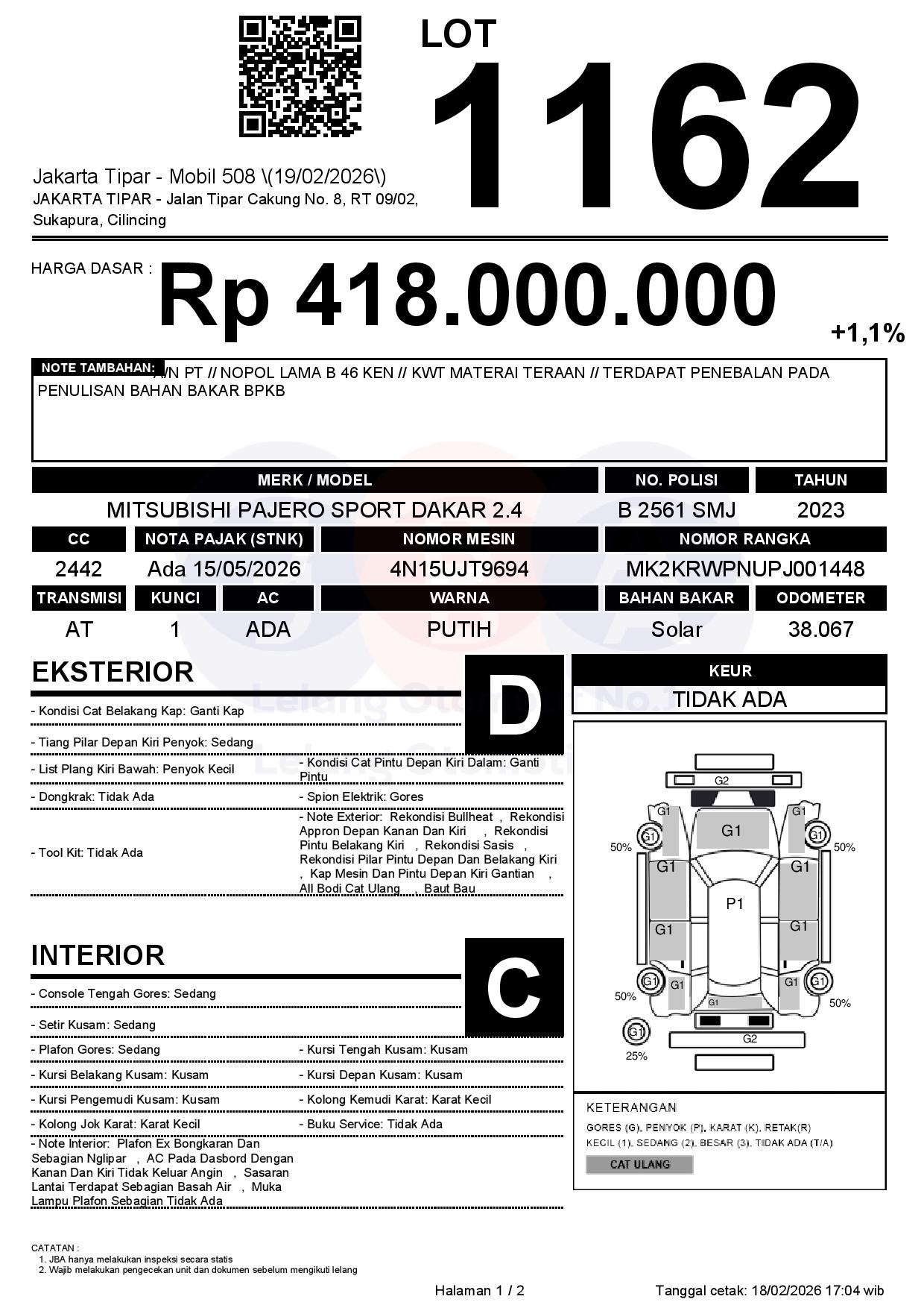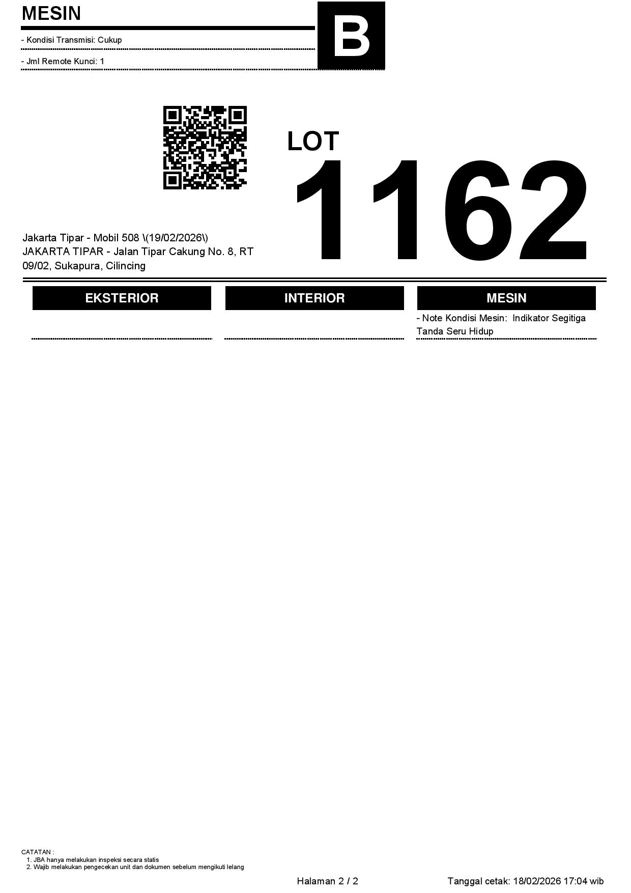 Tanggal Lelang: 19/02/2026 | 14:00 WIB