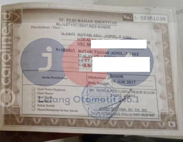 EX GANTI NOPOL B 1106 KZU // NOPOL ASAL PADA PERUBAHAN IDENTITAS BPKB BEDA 1 DIGIT DENGAN NOPOL LAMA YANG TERTERA DI IDENTITAS KENDARAAN BPKB //