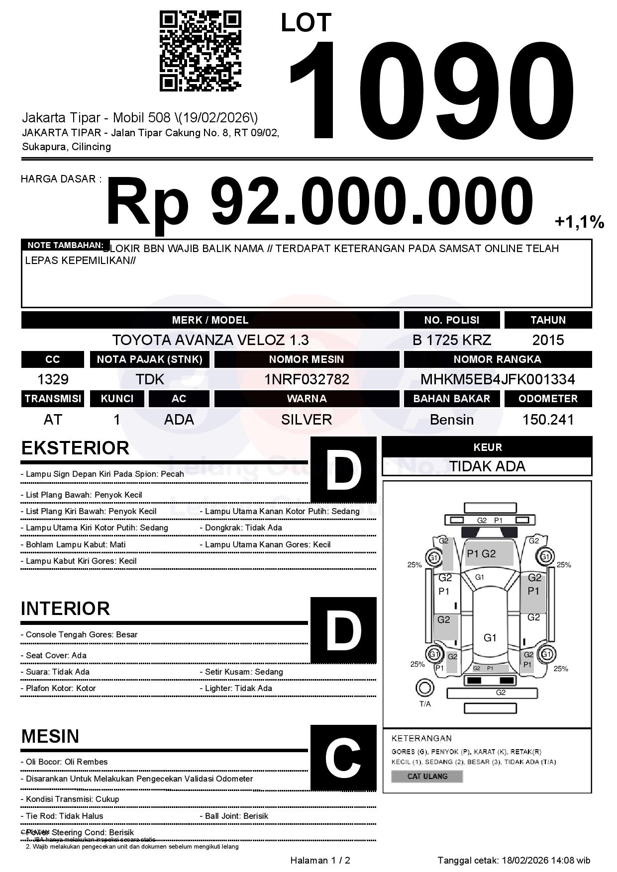 Tanggal Lelang: 19/02/2026 | 14:00 WIB