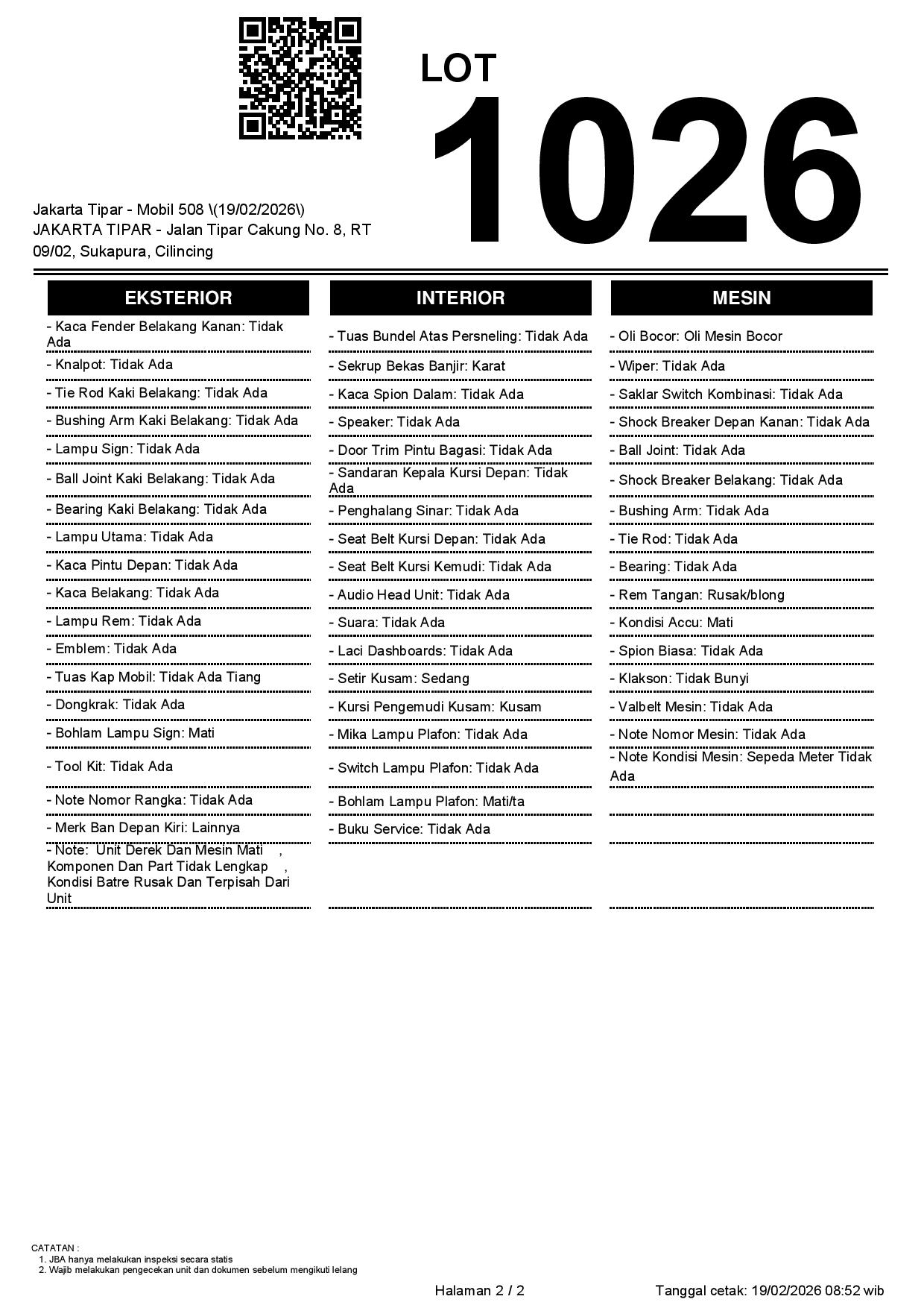 Tanggal Lelang: 19/02/2026 | 14:00 WIB