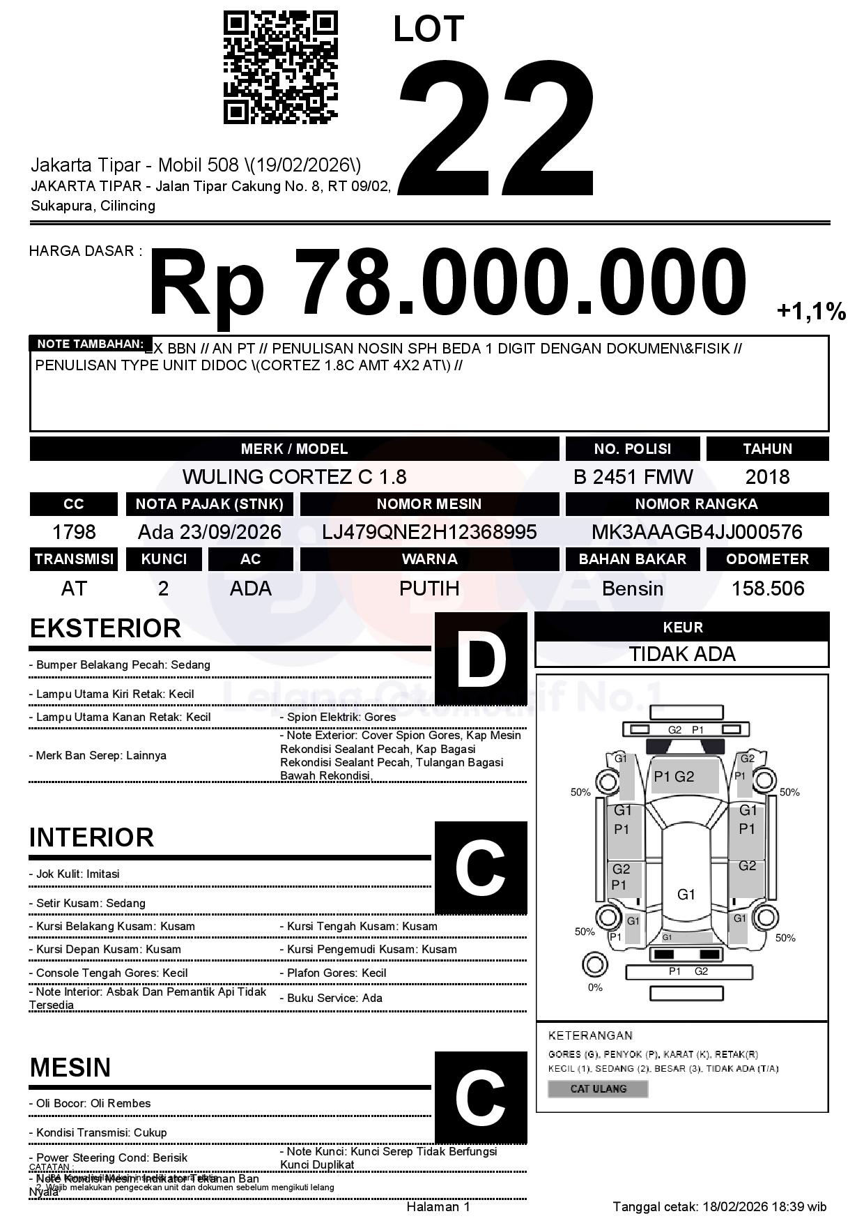 Tanggal Lelang: 19/02/2026 | 13:00 WIB