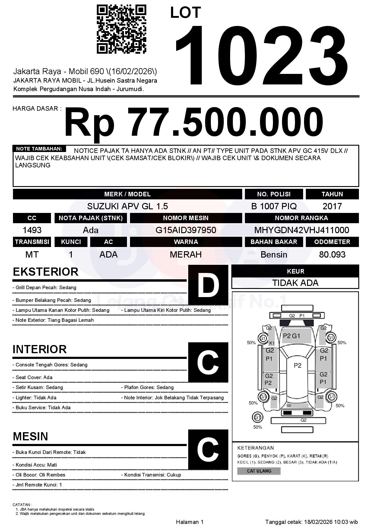 1. Peserta lelang wajib cek unit & dokumen