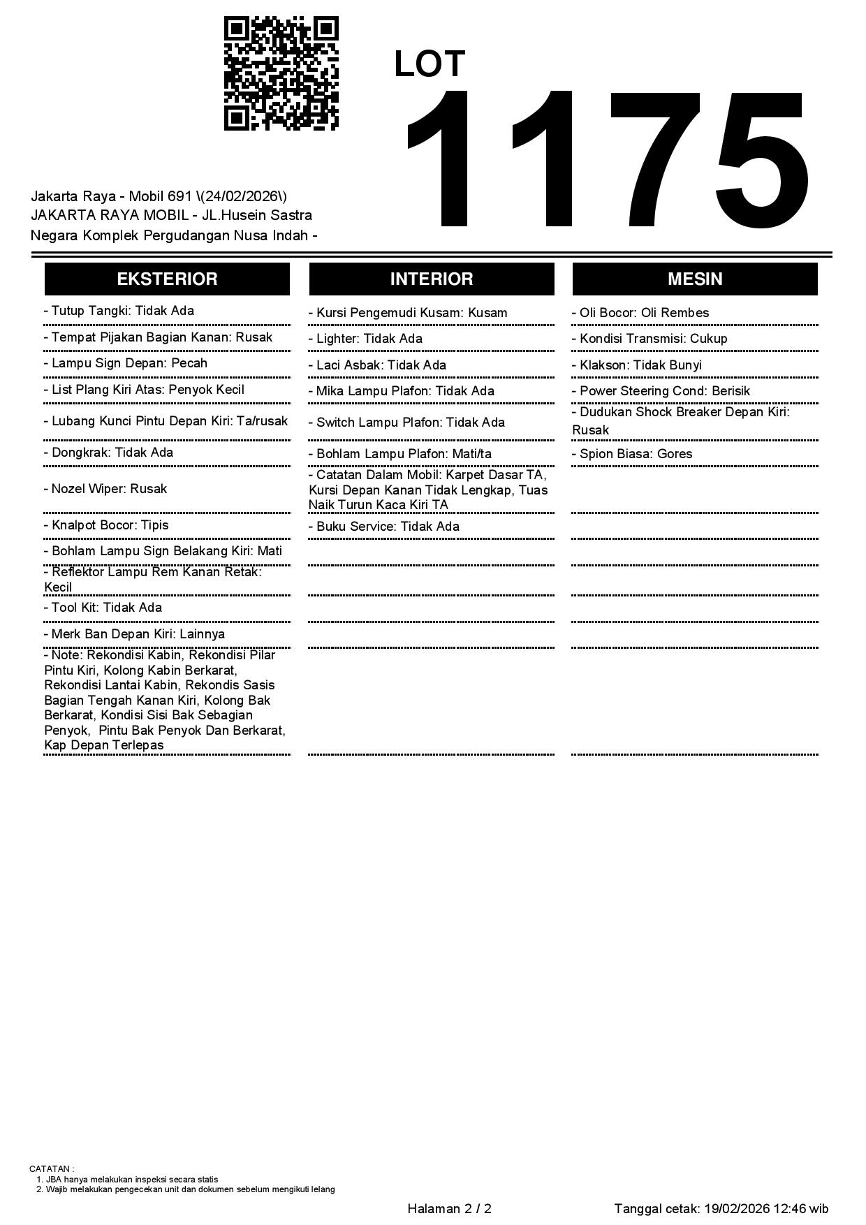 2. Peserta lelang wajib cek unit & dokumen