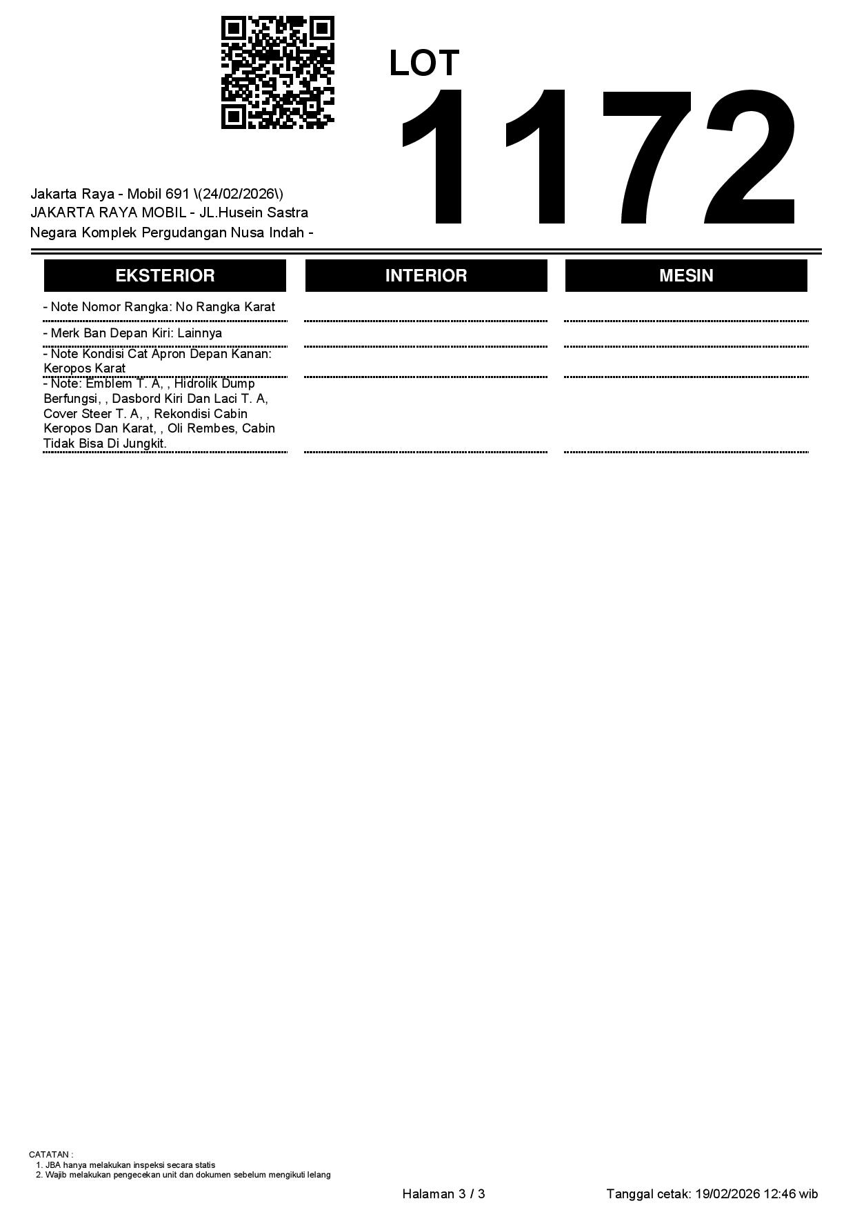 2. Peserta lelang wajib cek unit & dokumen