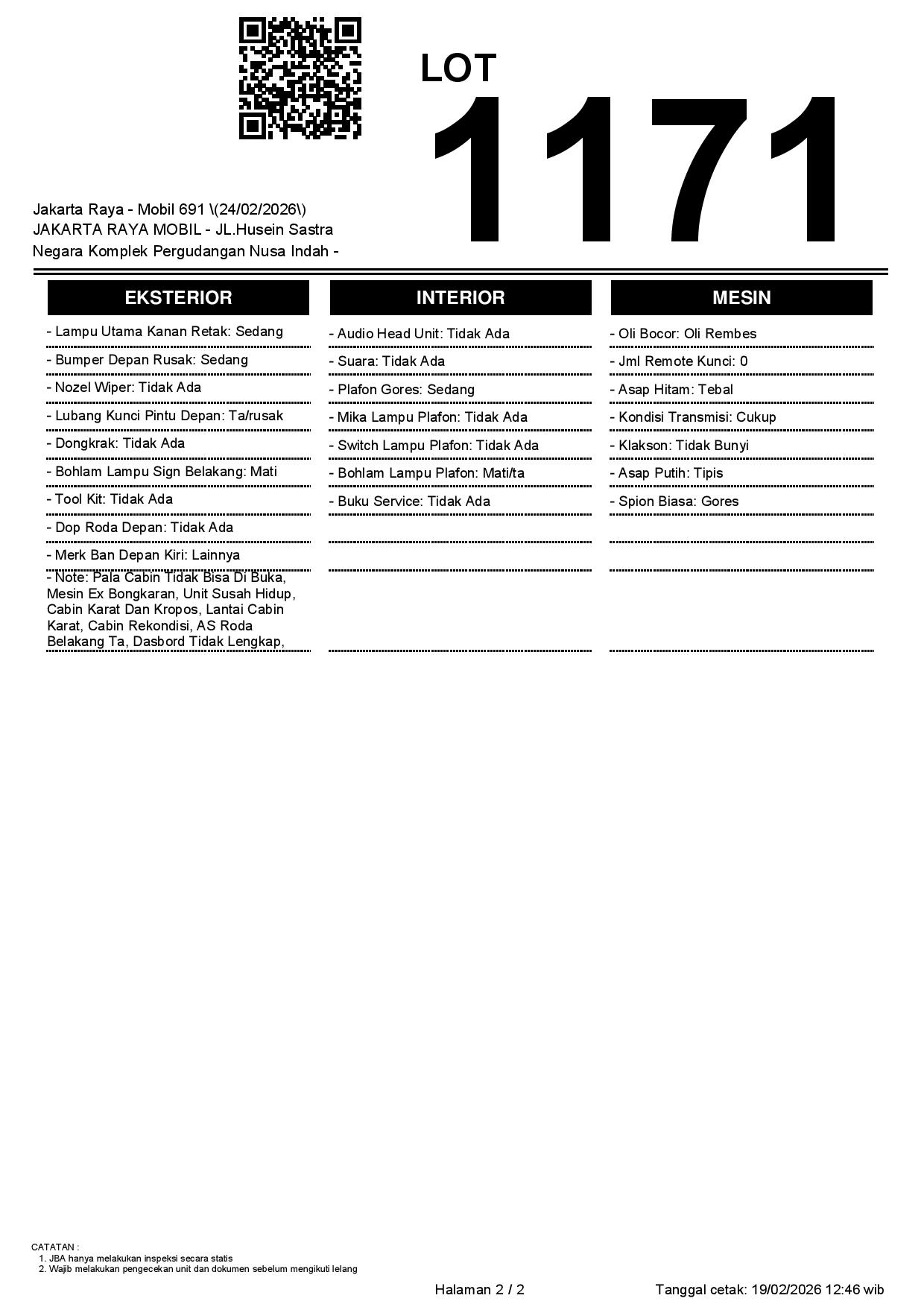 2. Peserta lelang wajib cek unit & dokumen