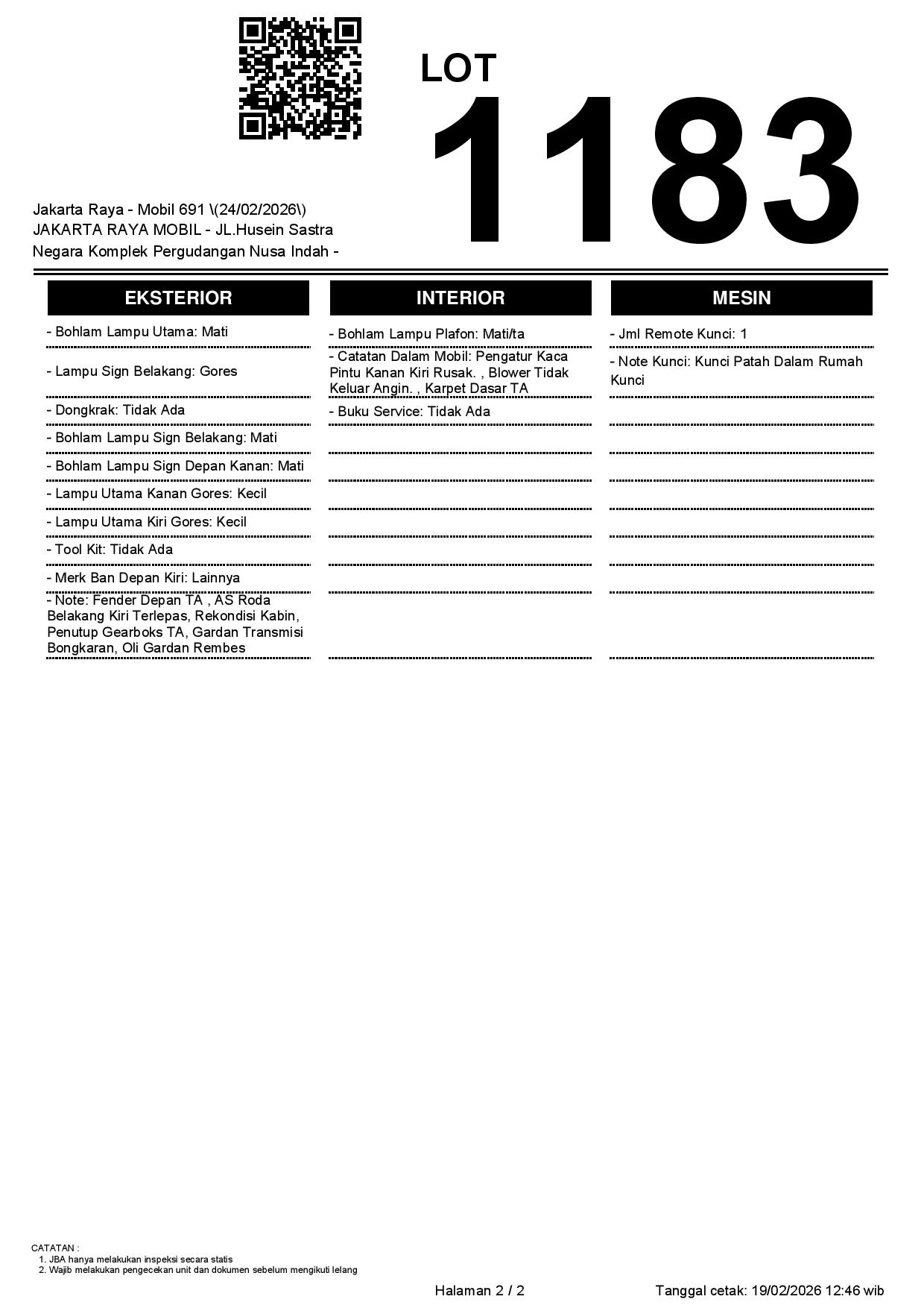 2. Peserta lelang wajib cek unit & dokumen