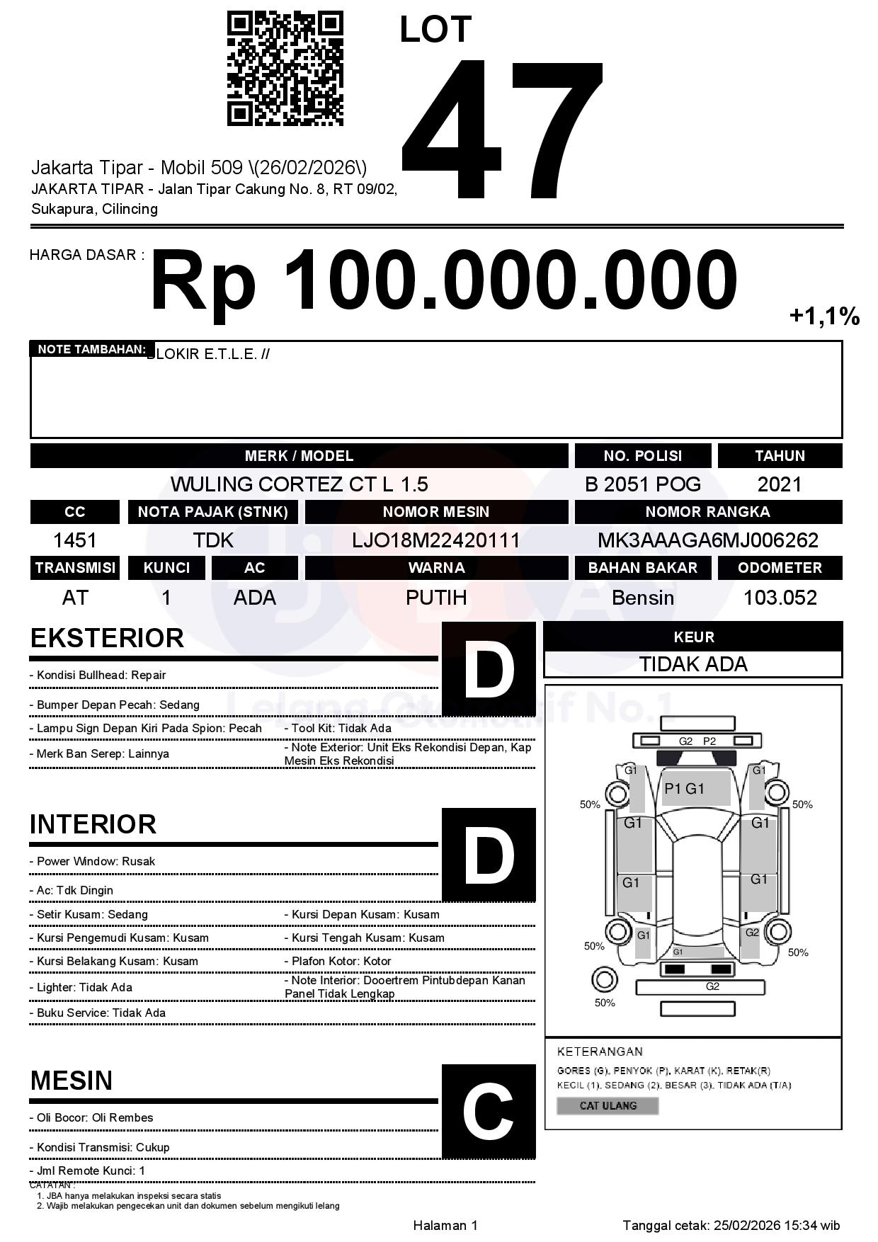 Tanggal Lelang: 26/02/2026 | 13:00 WIB