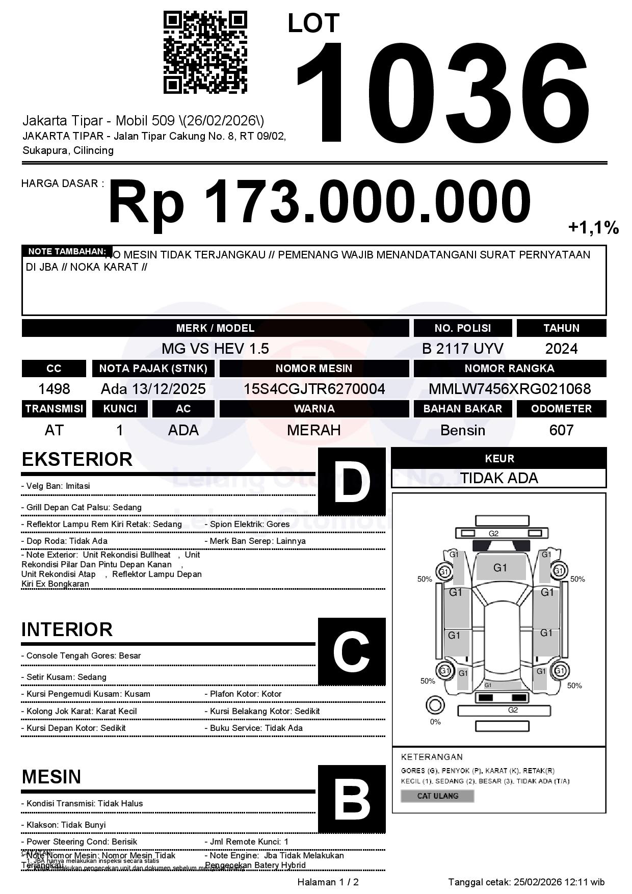 Tanggal Lelang: 26/02/2026 | 14:00 WIB