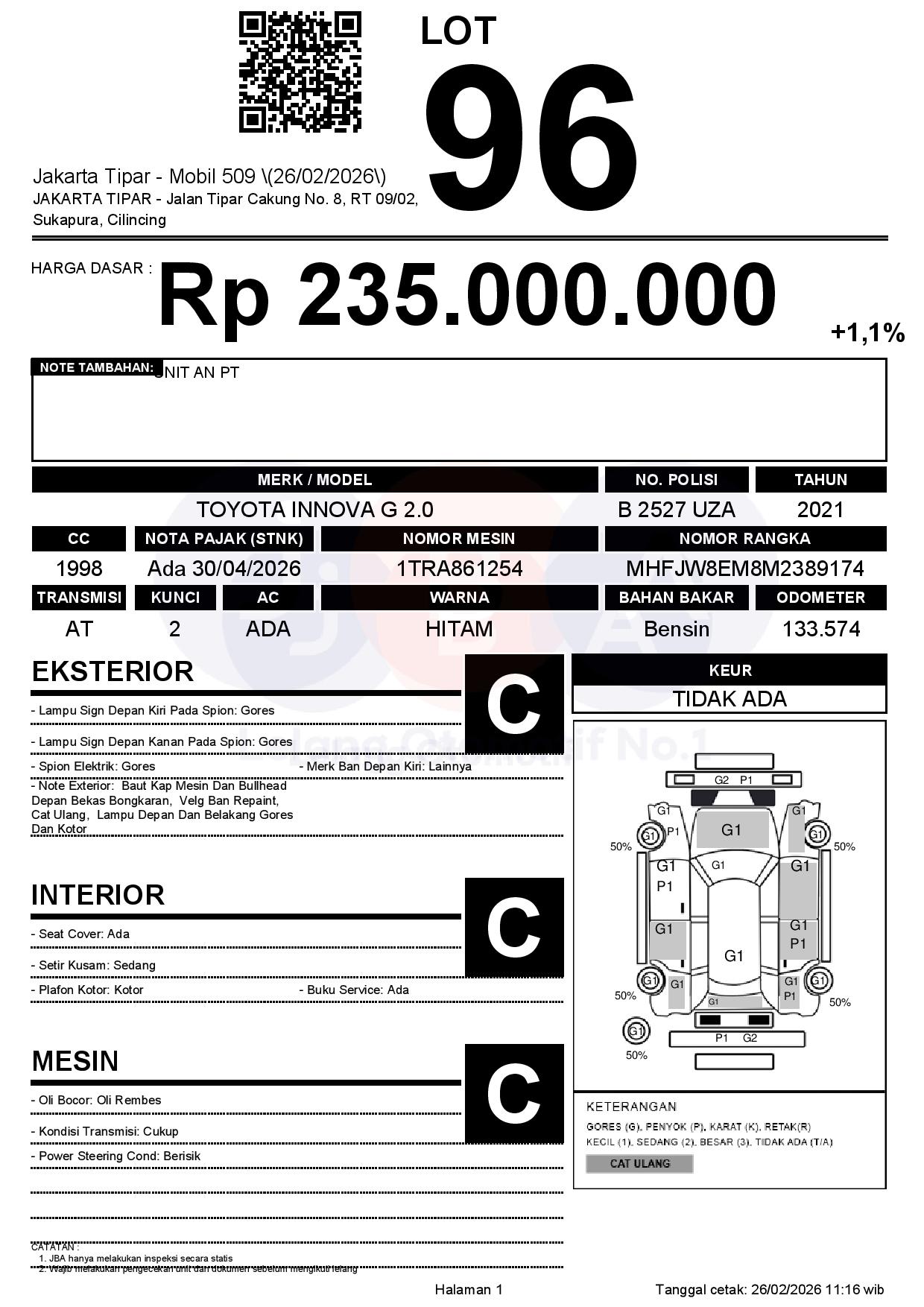 Tanggal Lelang: 26/02/2026 | 13:00 WIB