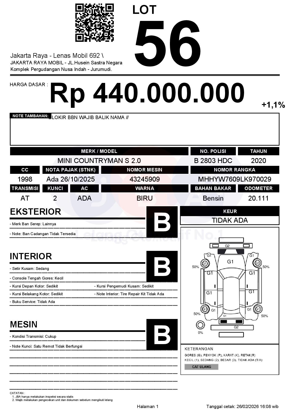 Tanggal Lelang: 26/02/2026 | 14:00 WIB
