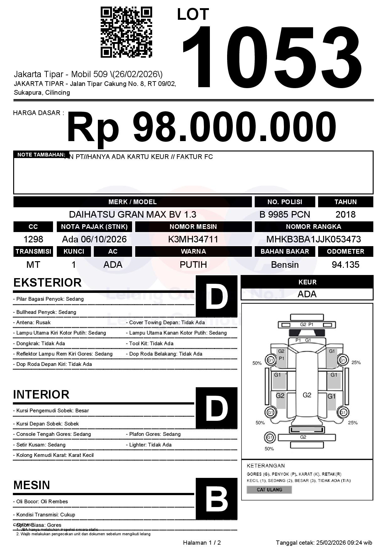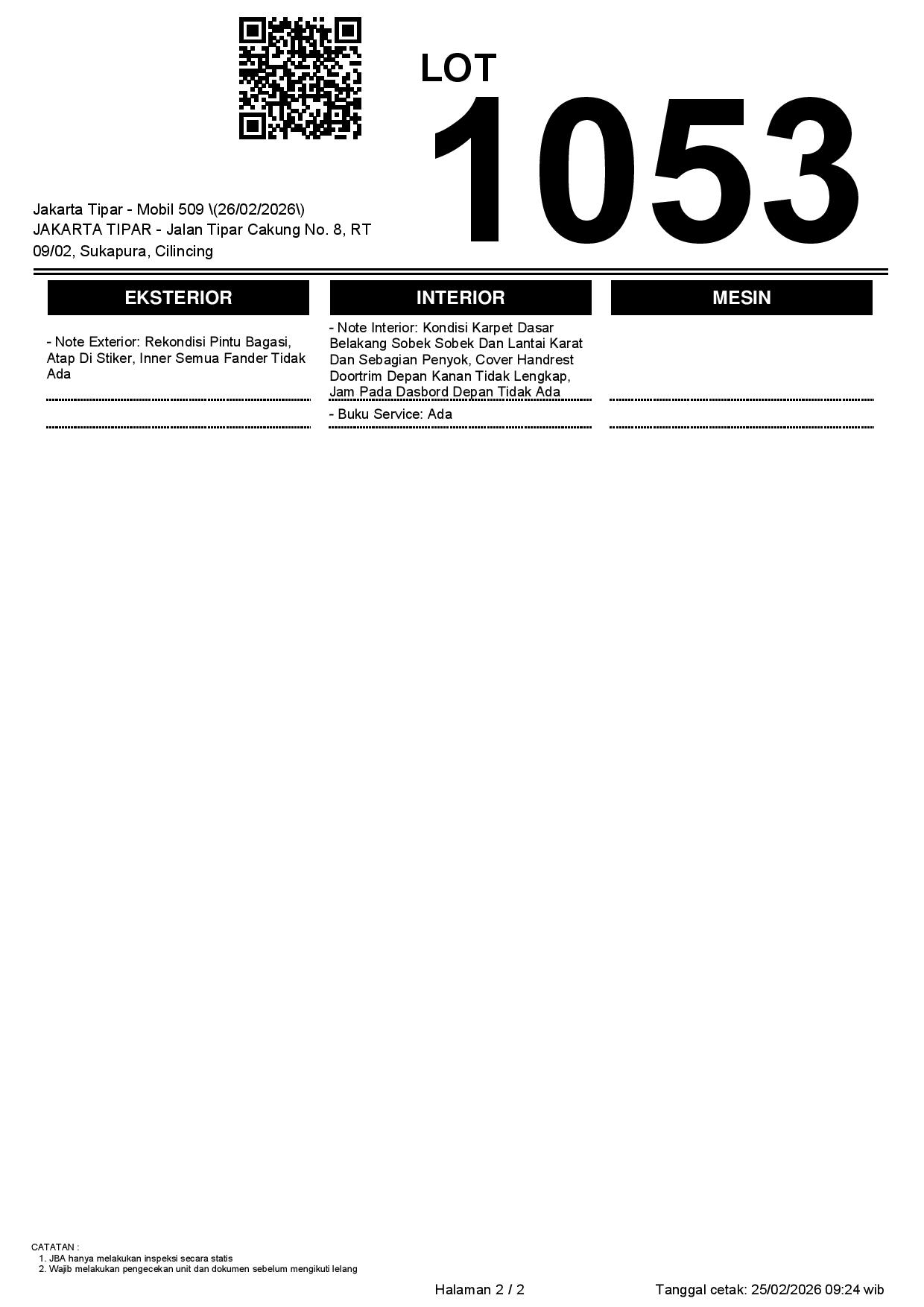 Tanggal Lelang: 26/02/2026 | 14:00 WIB