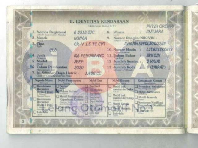 BLOKIR E.T.L.E. // AN PT // WARNA PADA STNK NOTICE SPH PUTIH MUTIARA SEDANGKAN BPKB FAKTUR PUTIH ORCHID MUTIARA // TYPE UNIT PADA DOKUMEN CRV 1.5 TC CVT
