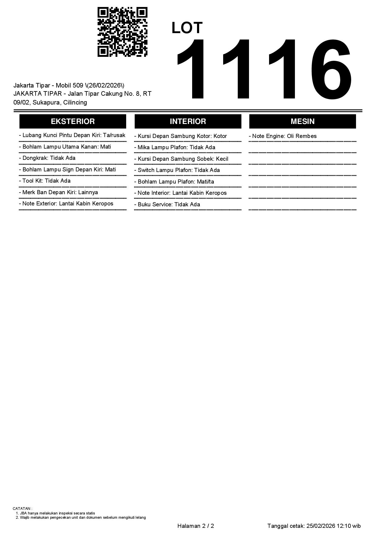 1. Peserta lelang wajib cek unit & dokumen