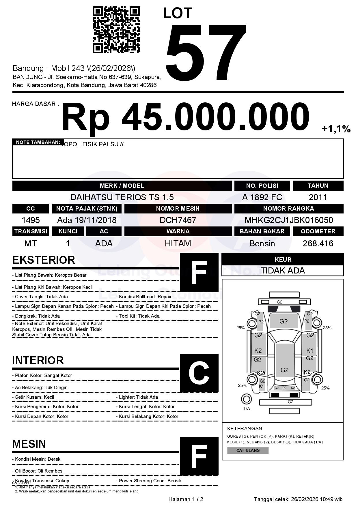 Tanggal Lelang: 26/02/2026 | 13:00 WIB