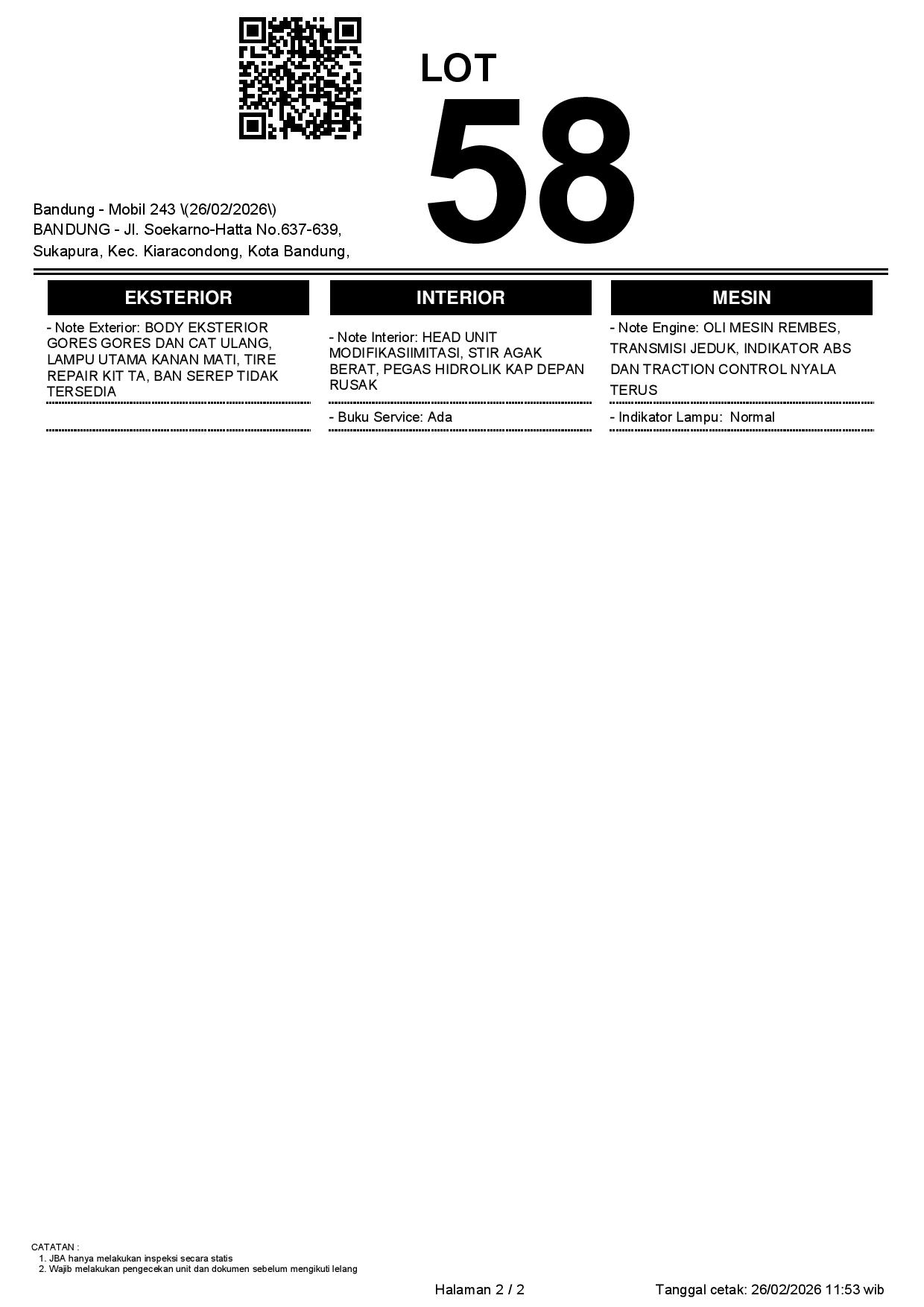 2. Peserta lelang wajib cek unit & dokumen