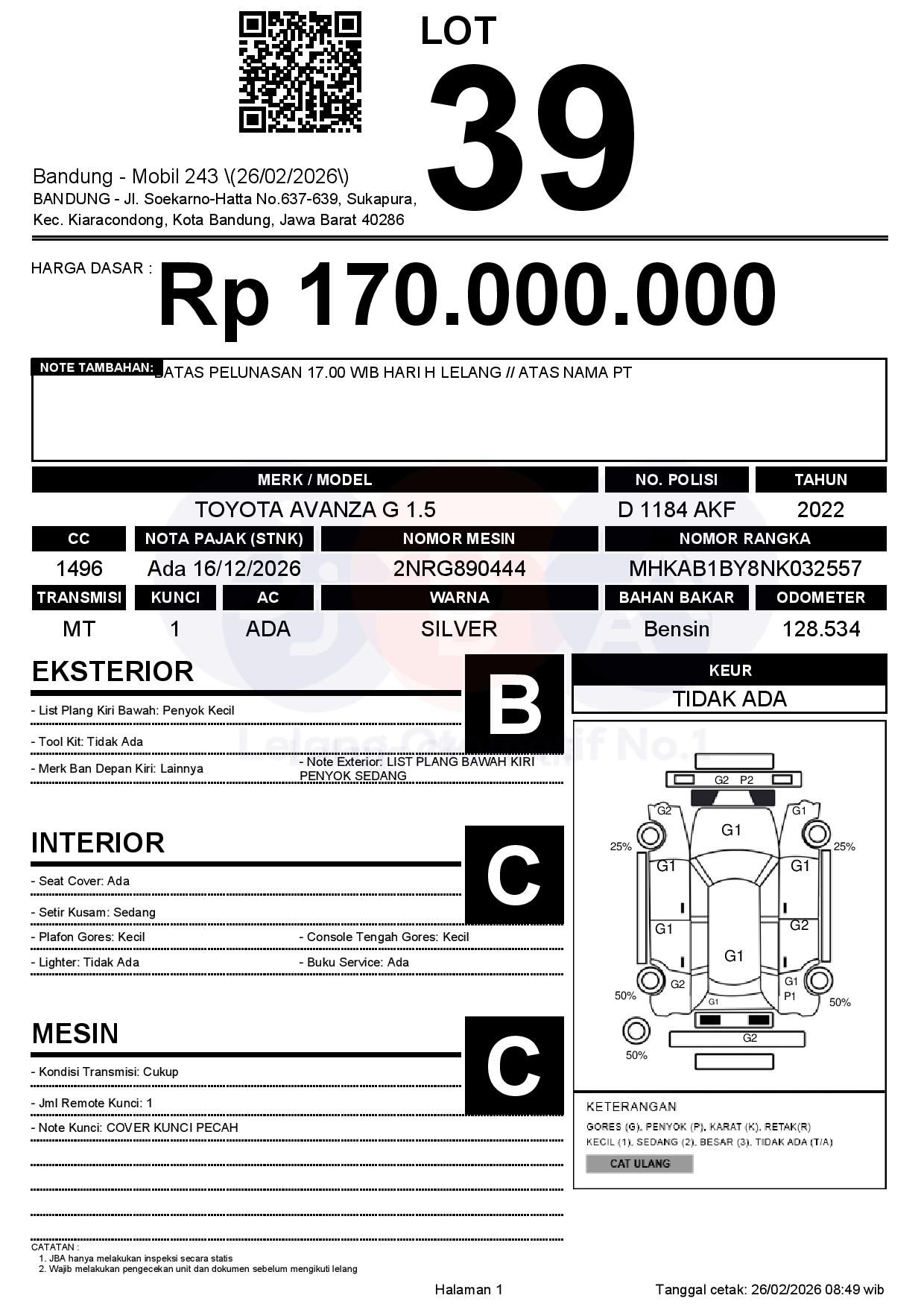 Tanggal Lelang: 26/02/2026 | 13:00 WIB