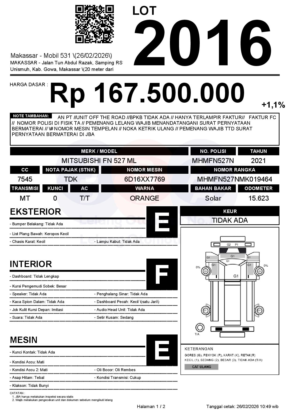 Tanggal Lelang: 26/02/2026 | 14:00 WITA