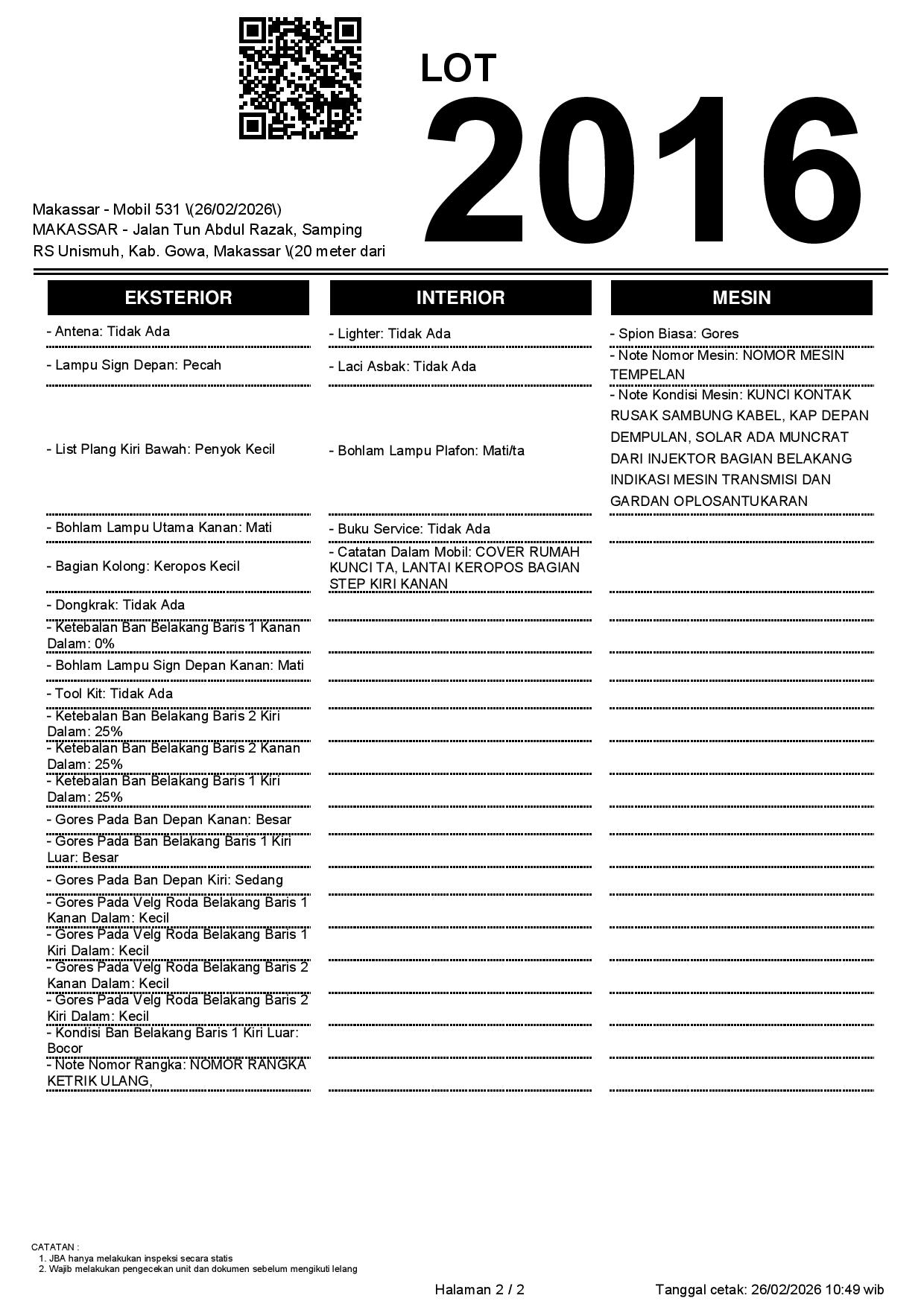 2. Peserta lelang wajib cek unit & dokumen