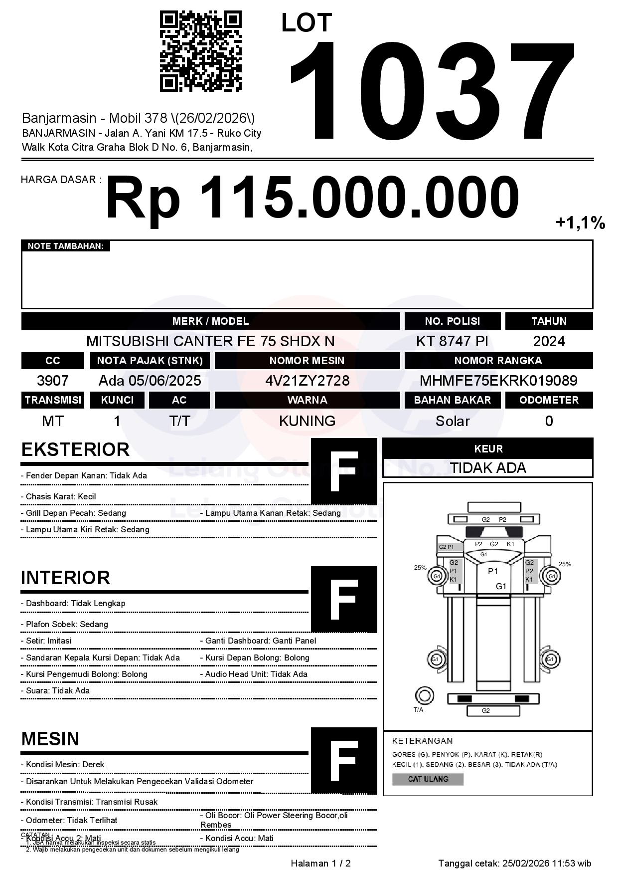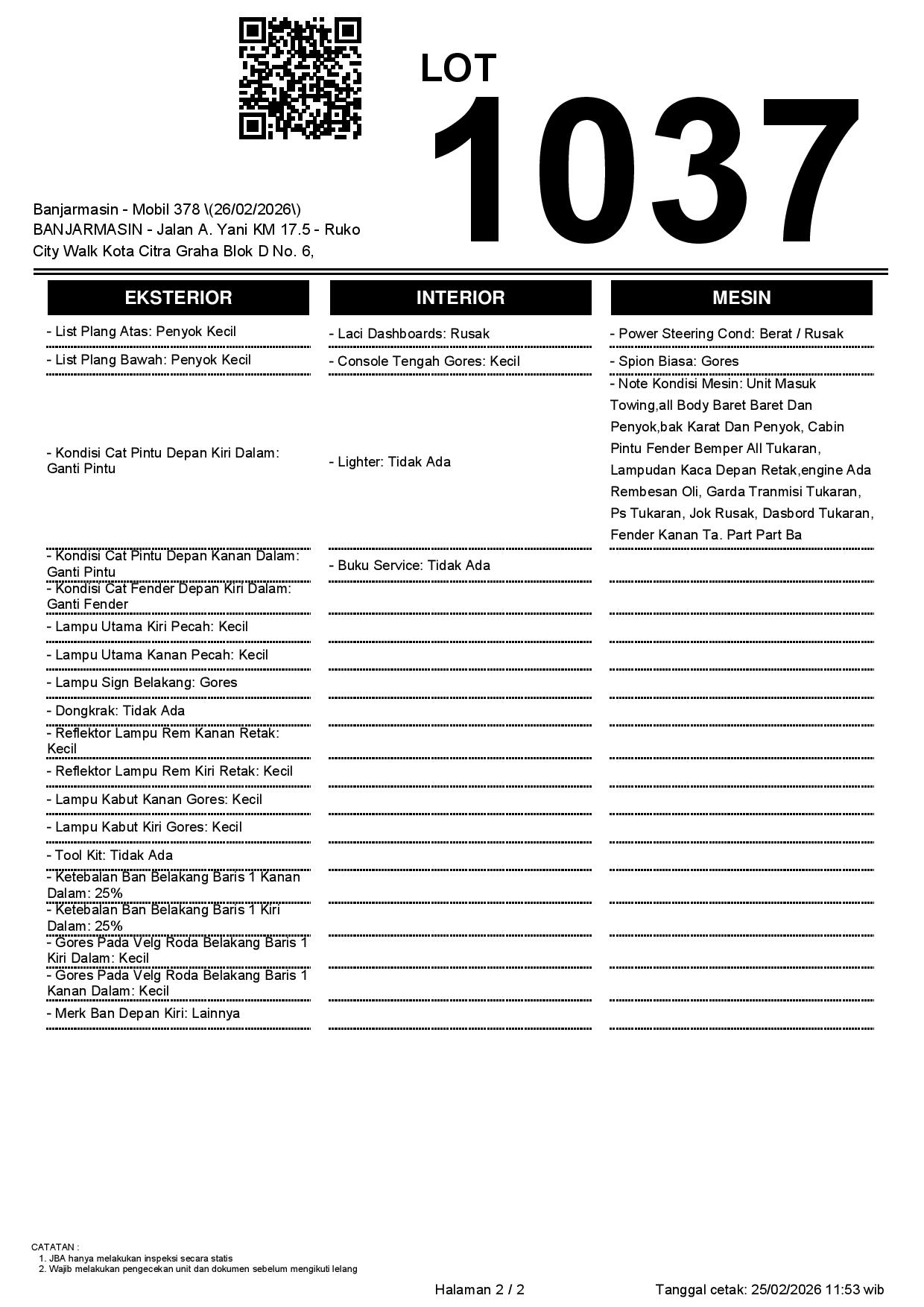 Tanggal Lelang: 26/02/2026 | 14:00 WITA