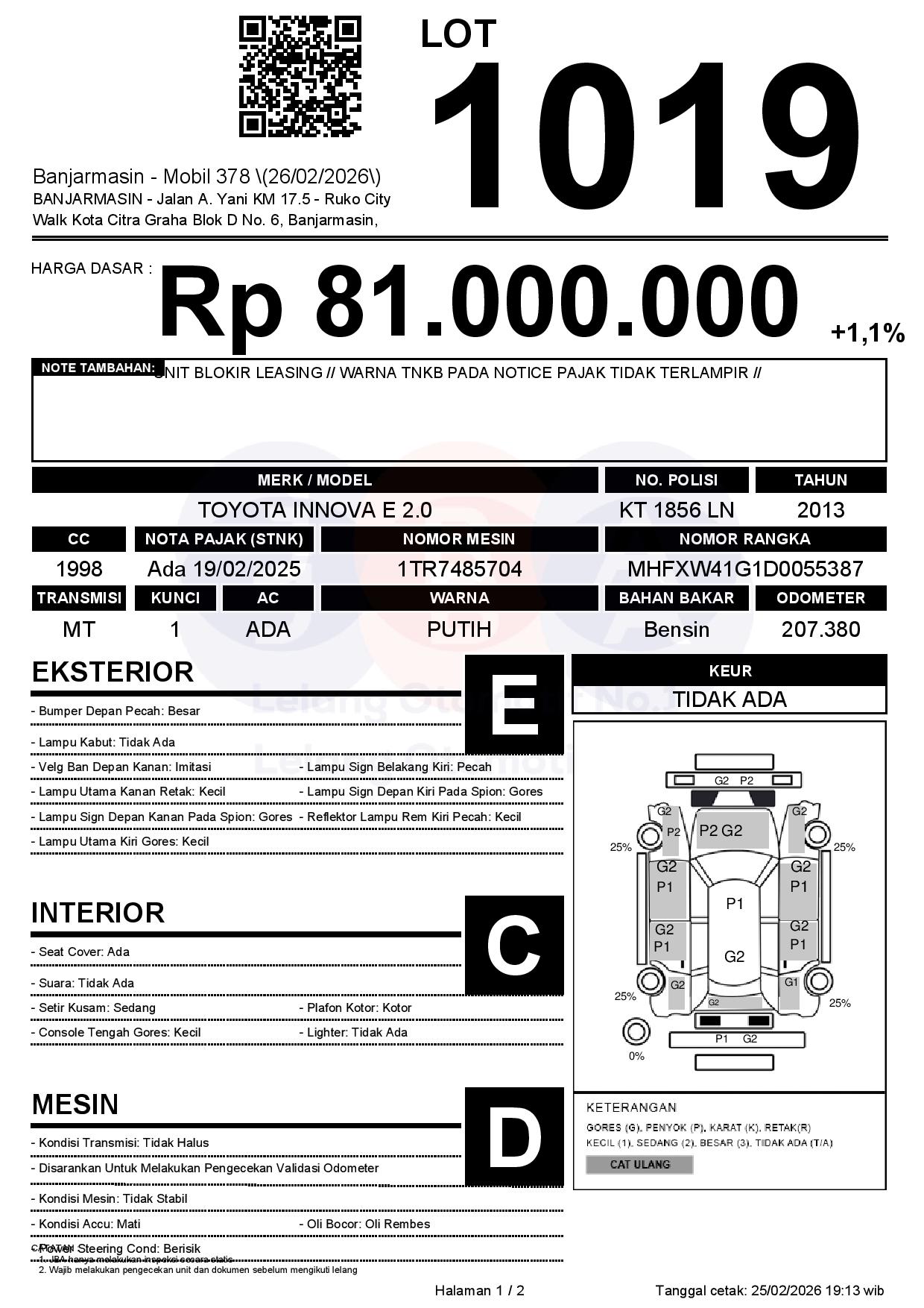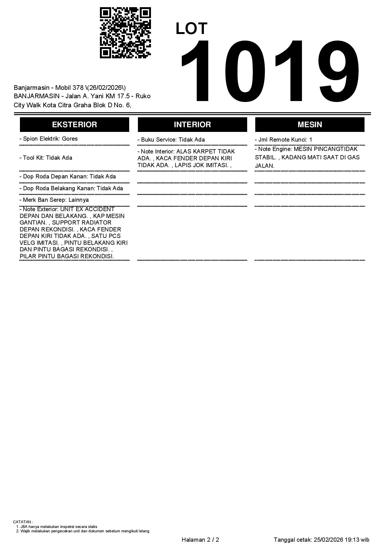 Tanggal Lelang: 26/02/2026 | 14:00 WITA